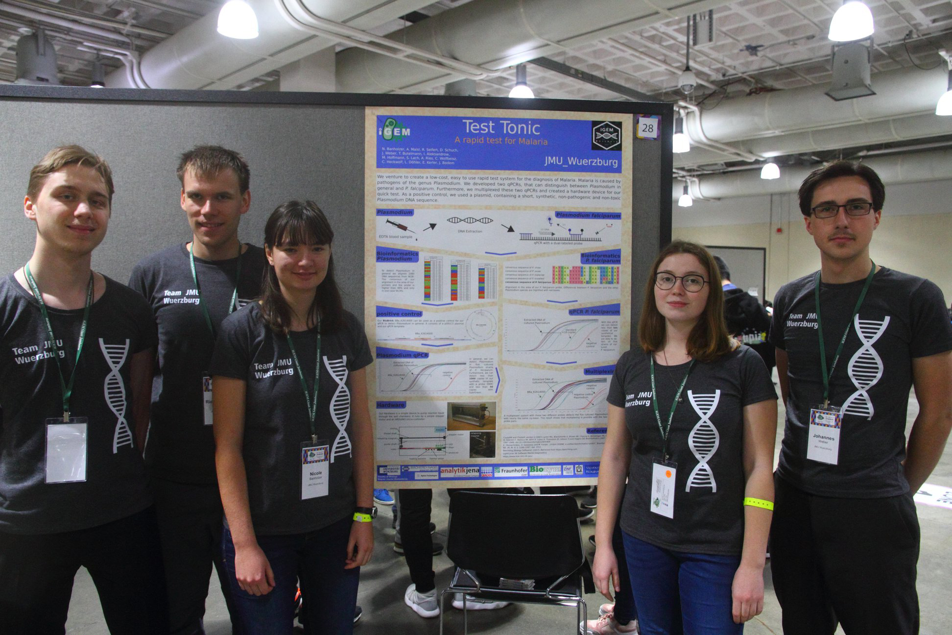 Eines der insgesamt 342 Teilnehmer-Teams in diesem Jahr kam von der Julius-Maximilians-Universität Würzburg (JMU). Darin vertreten waren Studierende der Biologie und Biomedizin, der Humanmedizin und aus dem Studiengang Computational Mathematics. Als Projektthema hatten sie die Entwicklung eines Schnelltests zum Nachweis von Malariaerregern gewählt.