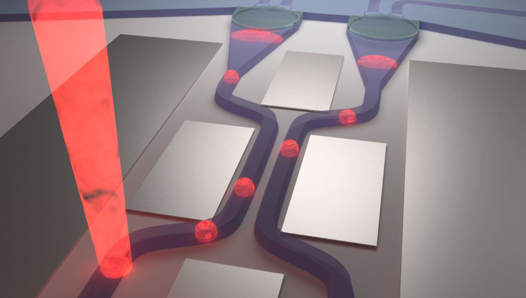 In contrast to the widespread silicon technology, the experiment was implemented on a gallium arsenide (GaAs) platform, allowing the direct integration of nanometer-sized structures, called quantum dots (QDs), which can serve as efficient on-demand sources of single photons. In addition, GaAs allows guiding these single photons to optical logic circuits and to special on-chip detectors made of superconducting nanowires. In the experiment, single photons emitted by an optically pumped quantum dot were guided inside a photonic waveguide and divided by an on-chip beamsplitter into two waveguide-arms, each equipped with a detector.