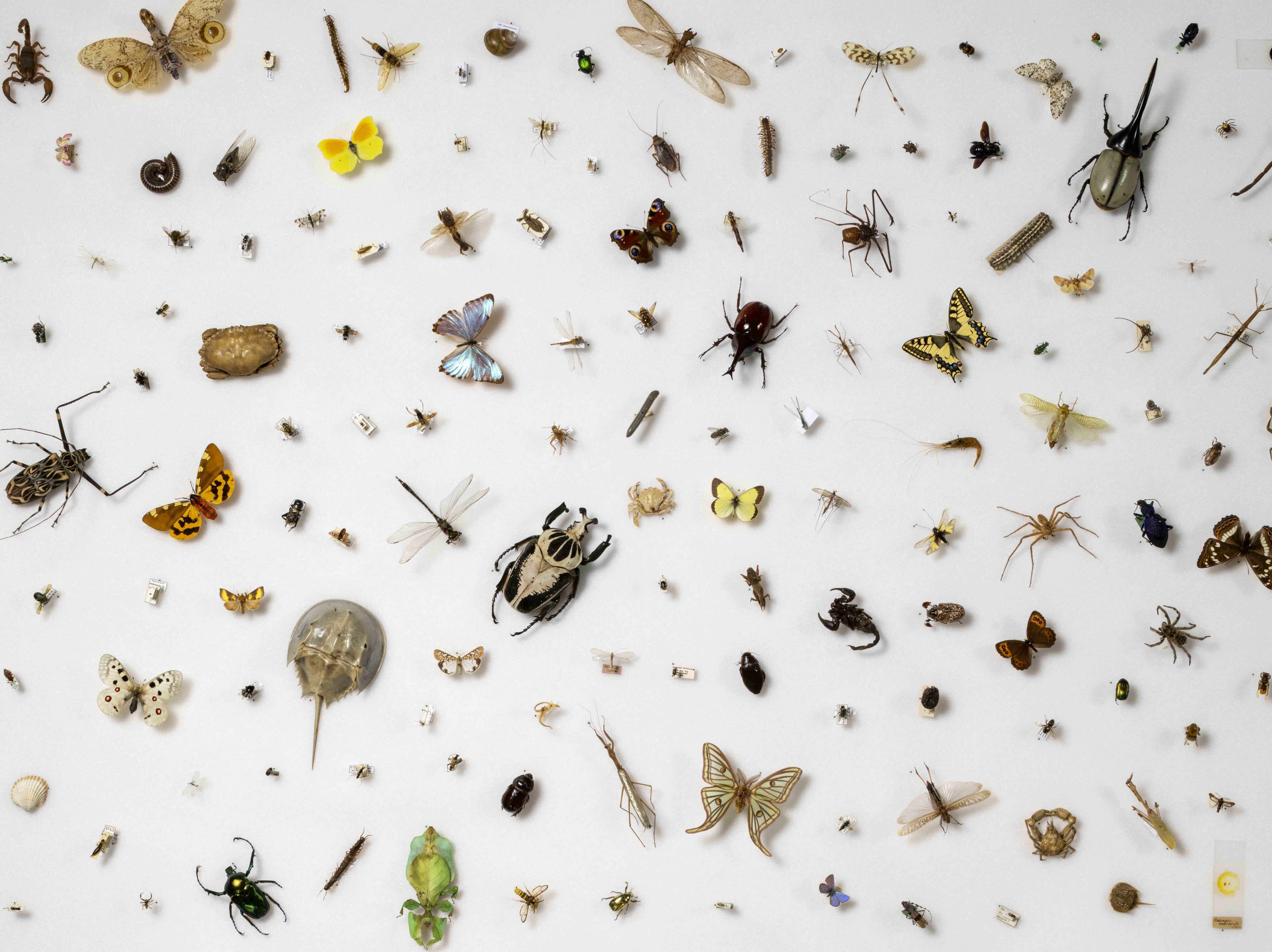 Ein Bockkäfer, eine Baumwanze und eine Gottesanbeterin: Überlebensgross und farbig leuchtend empfangen die Bilder von Levon Biss die Besucherinnen und Besucher des Zoologischen Museums. Sie weisen den Weg in die neue Sonderausstellung, in der sich alles um Insekten dreht: Um ihre Vielfalt, ihre Schönheit und ihre Bedeutung in unserem Alltag. Im Ausstellungsraum selbst hört man Grillen und Zikaden zirpen und immer mal wieder eine Fliege vorbeischwirren. Gleich beim Eingang wartet auf einem beleuchteten Tisch eine ganze Auslegeordnung unterschiedlichster kleiner Lebewesen, die unweigerlich zur Frage führt: Was macht ein Tier überhaupt zum Insekt?