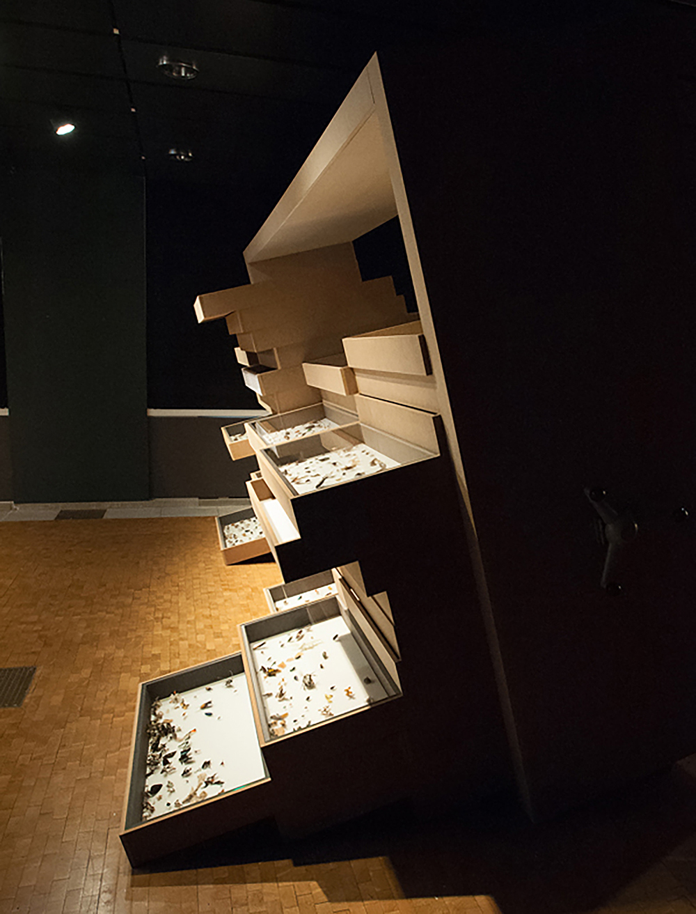 Ein grosser Bereich widmet sich schliesslich der in den letzten Jahren vielthematisierten Problematik des Insektensterbens – visualisiert durch ein für Insektensammlungen typisches Rollregal, das zu kippen droht. In den herausrutschenden Schubladen befinden sich zwar noch diverse Käfer, Schmetterlinge, Wanzen und Heuschrecken, besonders gut geht es ihnen in dieser Schräglage allerdings nicht. Über den klaren Trend zum Insektenschwund und darüber, dass dieser verheerende Folgen für unser Ökosystem hat, herrscht in der Wissenschaft Einigkeit. Die Ausstellung liefert dazu eine Vielzahl erschreckender Fakten.