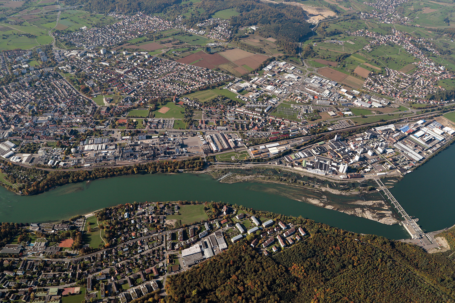 Es ist ein ungewöhnlicher Anblick: Wer das Werkgelände der Evonik Industries AG in Rheinfelden (Baden) verlässt, sieht gegenüber, auf der anderen Straßenseite, Mehrfamilienhäuser stehen. Linkerhand überragt ein neobarocker Kirchturm die Kantine. Industrie- und Gewerbegebiete liegen in der südbadischen Stadt in unmittelbarer Nähe zu Wohnsiedlungen. Einerseits ist das historisch bedingt: Als 1898 das Laufwasserkraftwerk in Betrieb ging, siedelte sich rasch Industrie an und es entstanden Arbeitersiedlungen. Andererseits liegt es an der geographischen Lage der Stadt: Im Norden begrenzen Ausläufer des Schwarzwaldes das Stadtwachstum und nur einige hundert Meter weiter im Süden der Hochrhein, der die Grenze zur Schweiz bildet.