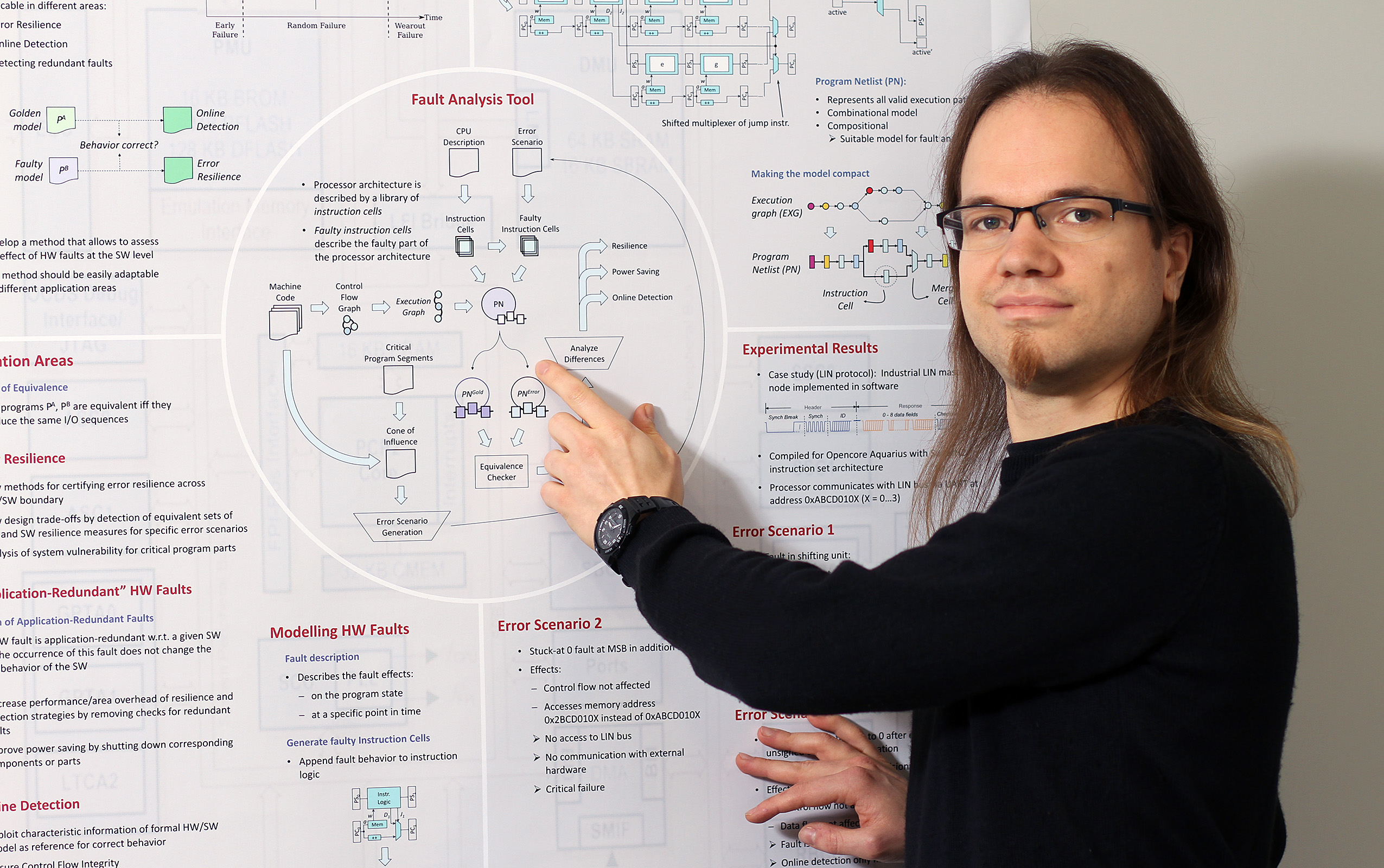 Das Kaiserslauterer Forscherteam hat nun ein Modell entwickelt, mit dem sie die Auswirkungen von Hardwarefehlern auf das Verhalten der Software analysieren. „Wir haben darin an verschiedenen Stellen der Hardware Fehler eingebaut“, fährt der Doktorand fort. Dieses Modell vergleichen die Ingenieure mit einer fehlerfreien Variante, bei der die Hardware reibungsfrei läuft. Bei ihren Tests haben die Ingenieure jeweils einzelne Fehler, aber auch Mehrfachfehler untersucht. „Wir haben geprüft, ob sie Auswirkungen auf die Software haben“, sagt Bartsch, der auch Erstautor der Studie ist. Dabei haben die Wissenschaftler herausgefunden, dass ein Großteil der Fehler keine Auswirkung auf die Software hat. „Dieser Anteil liegt bei 33 Prozent“, so Bartsch.