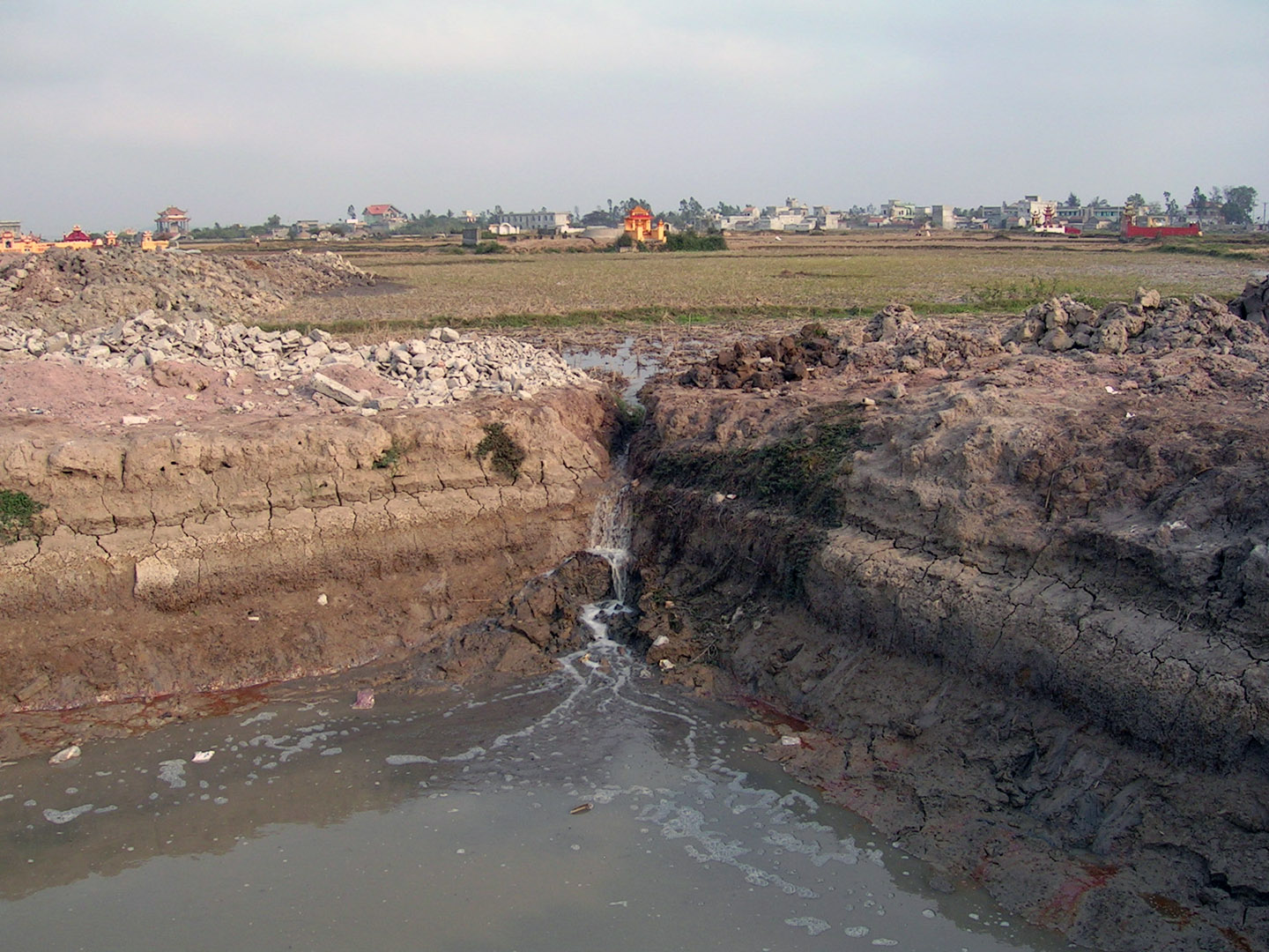 Das ursprünglich sumpfige Mekongdelta wird seit über 100 Jahren durch den Bau von zahlreichen Kanälen, Schleusen, Deichen usw. entwässert und hat sich zu einem äußerst produktiven Reisanbaugebiet mit drei jährlichen Reisernten entwickelt. Hinzu kommen inzwischen auch Aquakulturen für Shrimps und Fisch sowie Industrie für die Weiterverarbeitung landwirtschaftlicher Produkte.