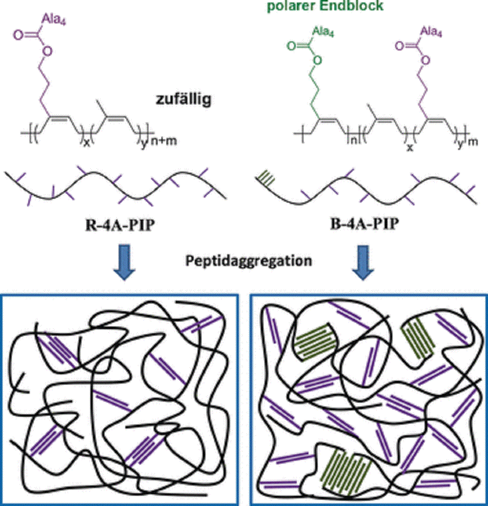 Da die Peptid- und die Polyisoprenketten nicht mischbar sind, lagern sich die Peptidketten bevorzugt zusammen. Dieser Effekt sorgt für die gewünschte physikalische Quervernetzung der Polyisoprenketten. Die Festigkeit und Zähigkeit des neuen synthetischen Kautschuks werden so stark erhöht, ohne die Elastizität zu beeinträchtigen. Das Material zeigte zudem eine deutliche Selbstverstärkung durch Dehnungskristallisation. In seinen Eigenschaften entspricht es damit vulkanisiertem Naturkautschuk.