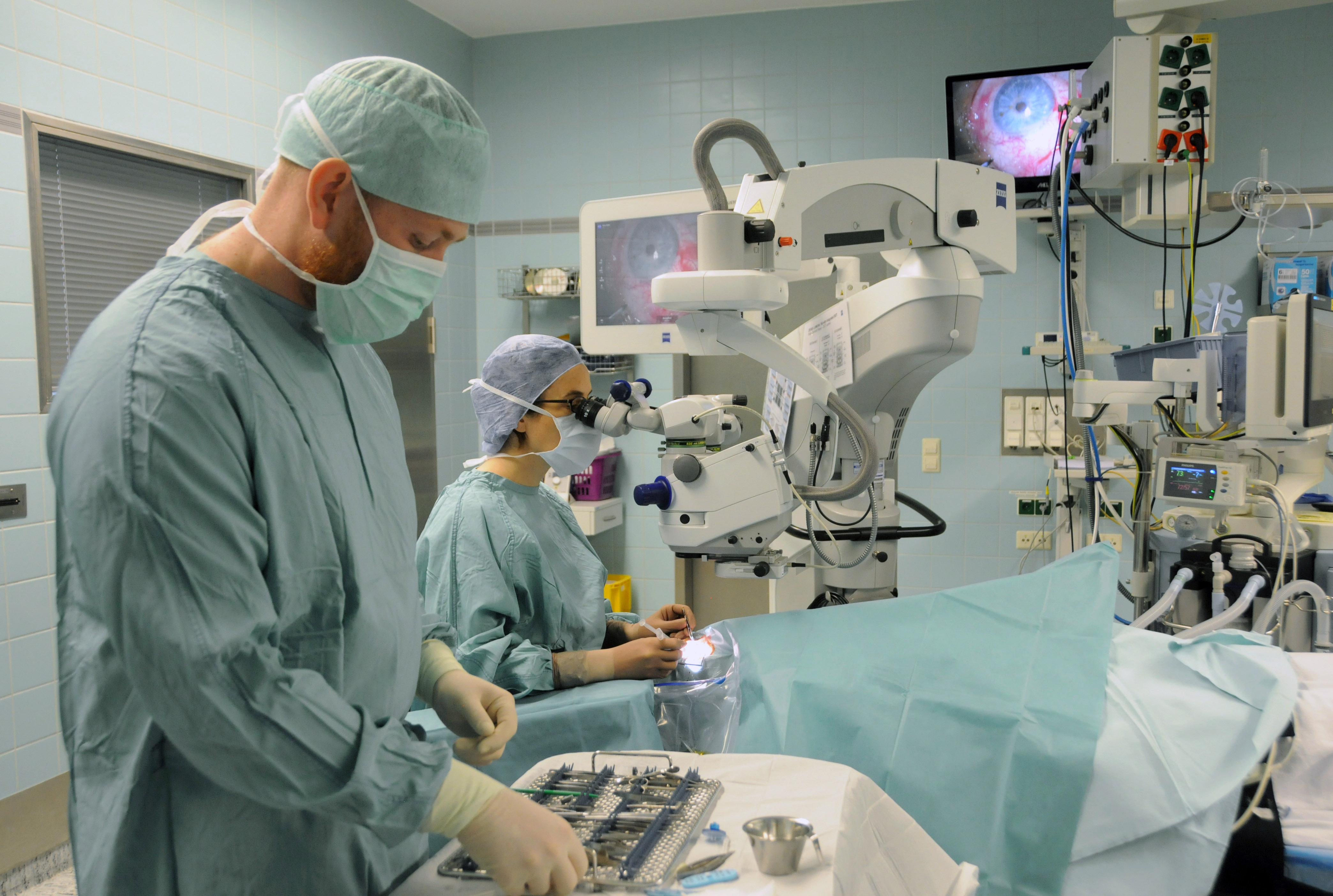 Mit dem neuen OP-Mikroskop werden die bisherigen aufwendigen Voruntersuchungen wesentlich verkürzt und sind für den Patienten angenehmer. Auch während der Operation bietet das Gerät einige Verbesserungen durch einen integrierten Tomographen. Prof. Thieme erklärt: „Mit einem komplexen Computerprogramm wird die genaue Anatomie des Auges gemessen und anhand dessen werden Daten erstellt, an welcher Stelle wir die künstliche Linse platzieren müssen, um die Hornhautverkrümmung optimal auszugleichen.“