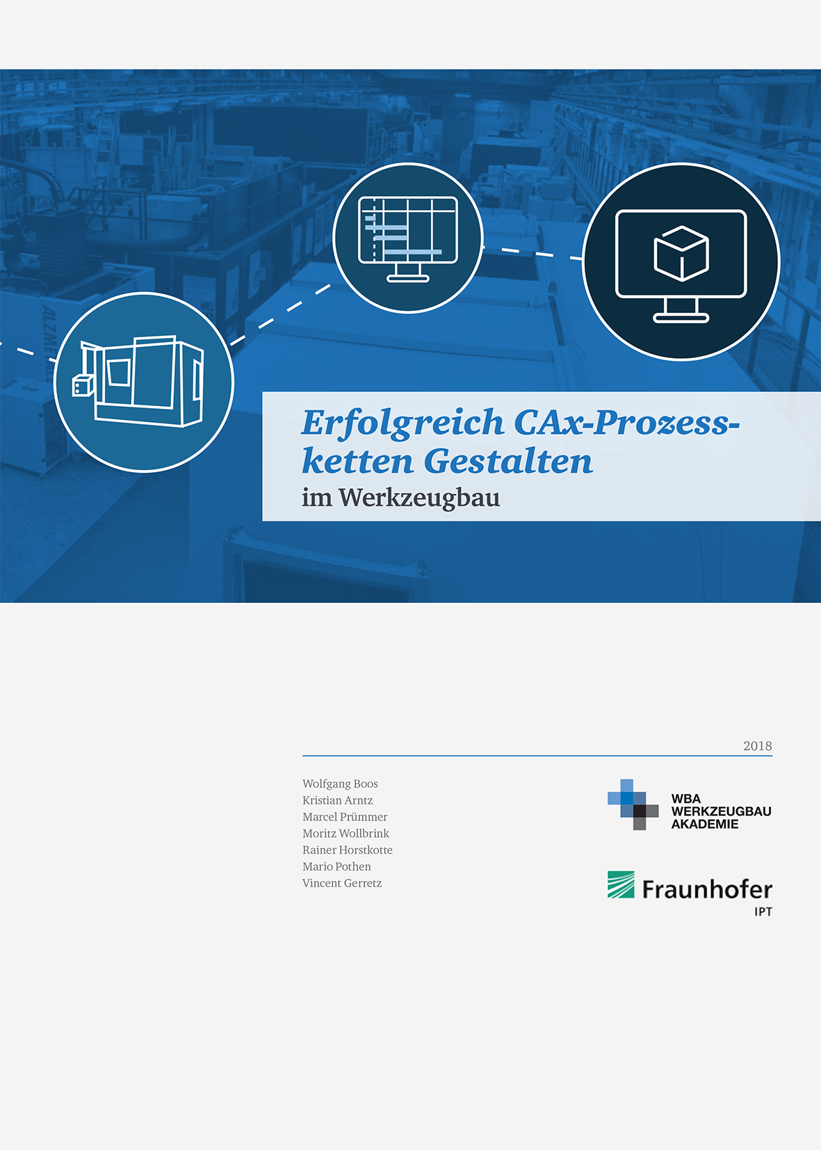 Die Durchgängigkeit und Effizienz von CAx-Prozessketten haben das Fraunhofer-Institut für Produktionstechnologie IPT und die WBA Aachener Werkzeugbau Akademie GmbH in einer gemeinsamen Studie untersucht. Neben einem Best-Practice-Beispiel aus der additiven Fertigung stellt die Studie die Stationen der computergestützten Prozesskette vor, leitet Handlungsfelder aus dem aktuellen Systemeinsatz der Werkzeugbaubetriebe ab und prognostiziert den zukünftigen Einsatz von CAx-Systemen. Nicht nur bei der Gestaltung der digitalen Prozesskette erkennen die Forscher Optimierungspotenzial in der Branche, sondern auch hinsichtlich der zurückhaltenden Anwendung neuer Funktionalitäten von CAx-Systemen.