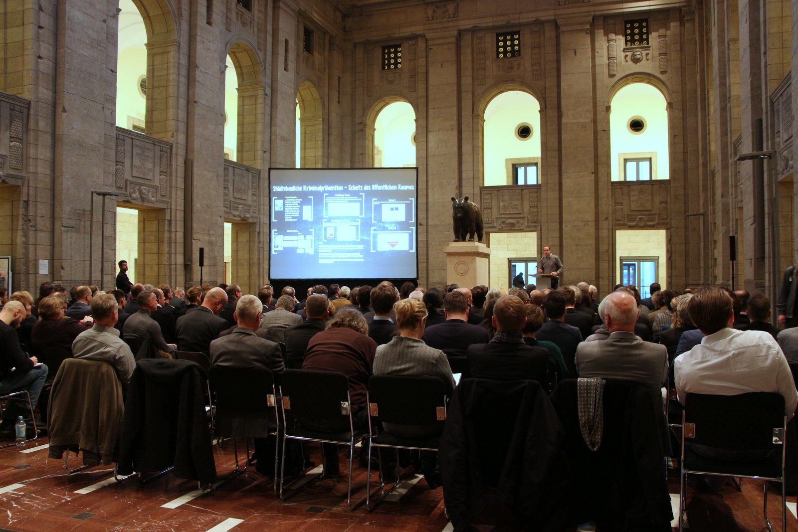 Das Phänomen des Terrorismus‘ in der Stadt sei nicht nur in Deutschland "trauriger Alltag“, bestätigte Prof. Dr.-Ing. habil. Norbert Gebbeken von der Universität der Bundeswehr München. Er stellte unter dem Titel „Verpollerung der Städte“ stadtplanerisch angepasste multifunktionale Lösungen vor. Der Wissenschaftler mahnte an, dass es in Deutschland diesbezüglich auf dem Gebiet der Stadtplanung in Sachen Terrorschutz Nachholbedarf gibt. In technischen, auf bestimmte Situationen bezogenen Maßnahmen allein sieht Prof. Dr. Marc Coester von der HWR Berlin nicht das Allheilmittel für Kriminalität an, wenngleich als essentiell. Vielmehr müsse das Gemeinschaftsgefühl gestärkt werden, konstatierte er in seinem Impulsvortrag „Städtebauliche Kriminalprävention“. Nur im Einklang mit sozialem Zusammenhalt könne Gewalt zuverlässiger entgegengewirkt werden.