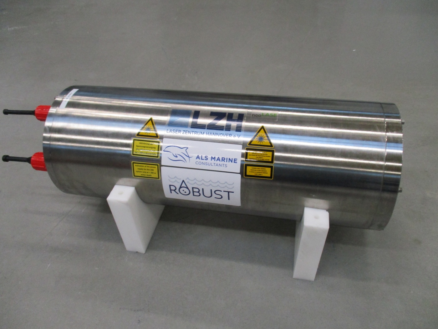 Das LZH hat das entwickelte LIBS-System erfolgreich in das von ALS Marine Consultants designte und gefertigte Druckgehäuse integriert. Das System wurde in einem Wasserbecken am LZH getestet. Die einwandfreie Spannungsversorgung sowie die Datenkommunikation mit dem ROV Kiel 6000 des GEOMAR konnte nachgewiesen werden.