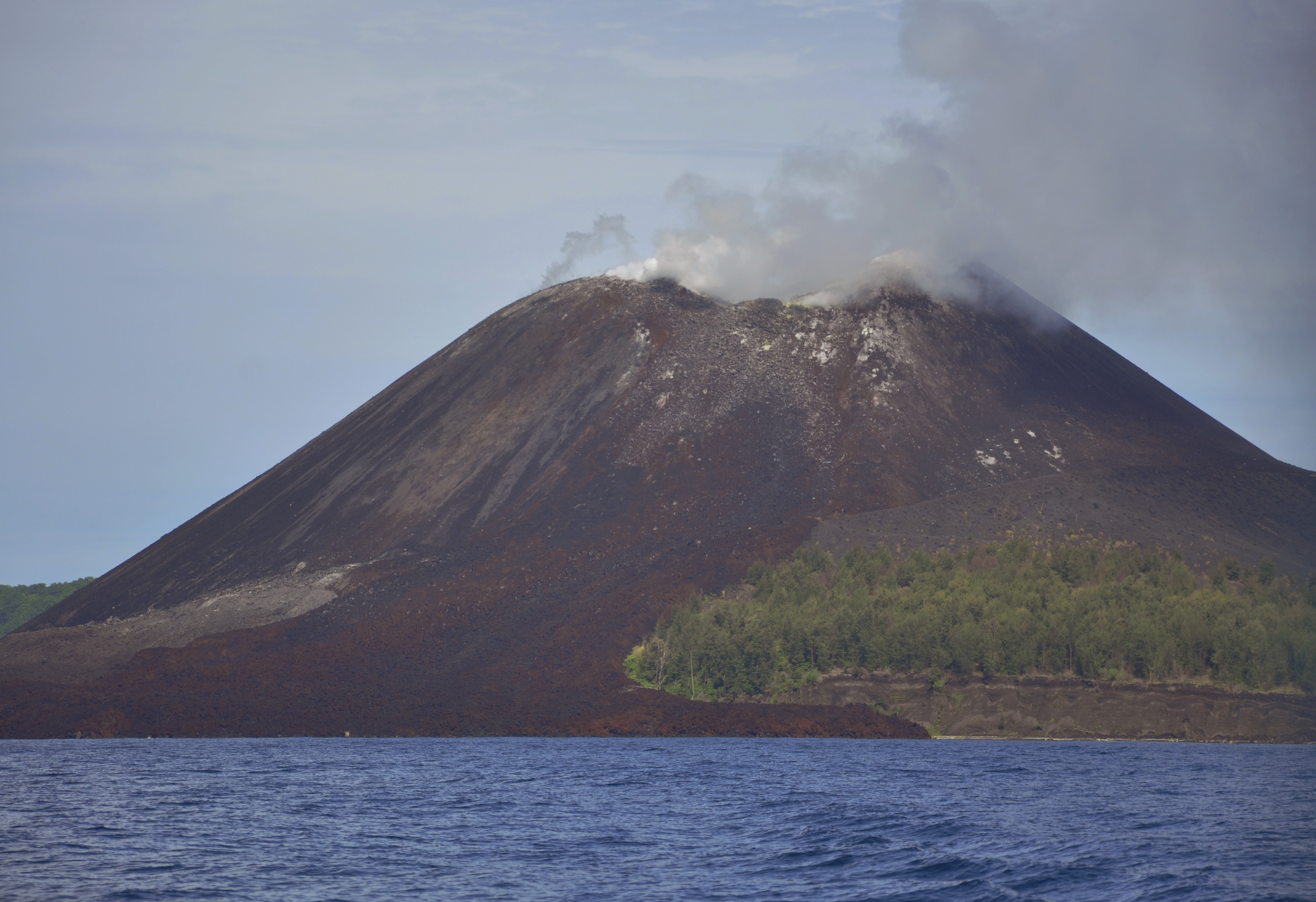 “Anak is growing by eruptions, so it first erupted in 1927 from the remnants of the crater left after the major 1883 eruption of Krakatau.” says Burton. “[It] has been continuously subaerial since 1930.”