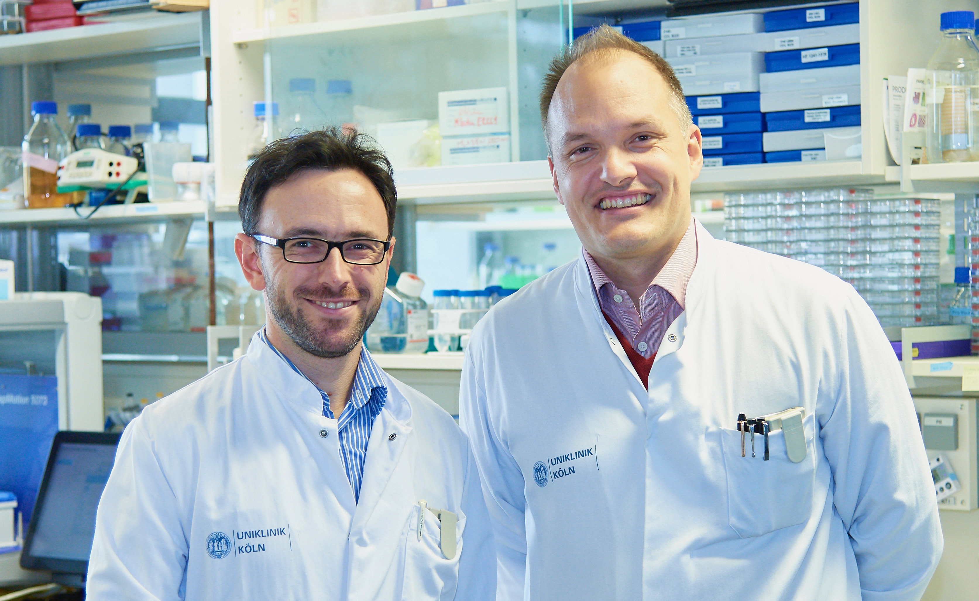 „Die Genanalyse ergab, dass bei diesen Kindern eine einzelne Mutation für das Vorliegen ihrer Erkrankung verantwortlich ist. Diese Mutation im UBQLN4-Gen führte zum kompletten Verlust des Proteins“, sagt Prof. Reinhardt, Leiter dieser Studie. „UBQLN4 ist ein kleines Protein welches dabei hilft, andere Proteine zum Proteasom, der Abbaufabrik der Zelle, zu bringen“, so Prof. Reinhardt weiter. Um den genauen Mechanismus von UBQLN4 in der Reparatur von DNA-Schäden zu verstehen, verursachte sein Team absichtlich DNA-Schäden in isolierten Zellen der Patienten, als auch in genetisch veränderten Zellen und verfolgte die Reparatur der DNA-Schäden im Detail.