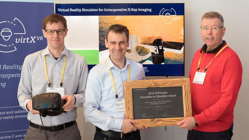 Davos in den Schweizer Alpen. Matthias Süncksen nimmt den erstmals verliehenen „AOTrauma Innovation in Education Award“ entgegen. AOTrauma ist eine internationale Konferenz von Chirurgen, Orthopäden und Ärzten weiterer Fachbereiche, auf der eine hochkarätige Jury aus 19 Bewerbungen aus aller Welt den Preisträger gewählt hat. Süncksen ist Student und wissenschaftlicher Mitarbeiter im Projekt „Neue Mensch-Computer-Schnittstellen in der Medizinischen Bildgebung“ und hat im Rahmen eines Master-Projekts zusammen mit Teistler und Prof. Klaus Dresing von der Uni-Klinik Göttingen einen virtuellen Trainingsraum für interoperative Bildgebung entwickelt. OP-Personal soll geschult werden, während eines chirurgischen Eingriffs Röntgenaufnahmen durchzuführen.