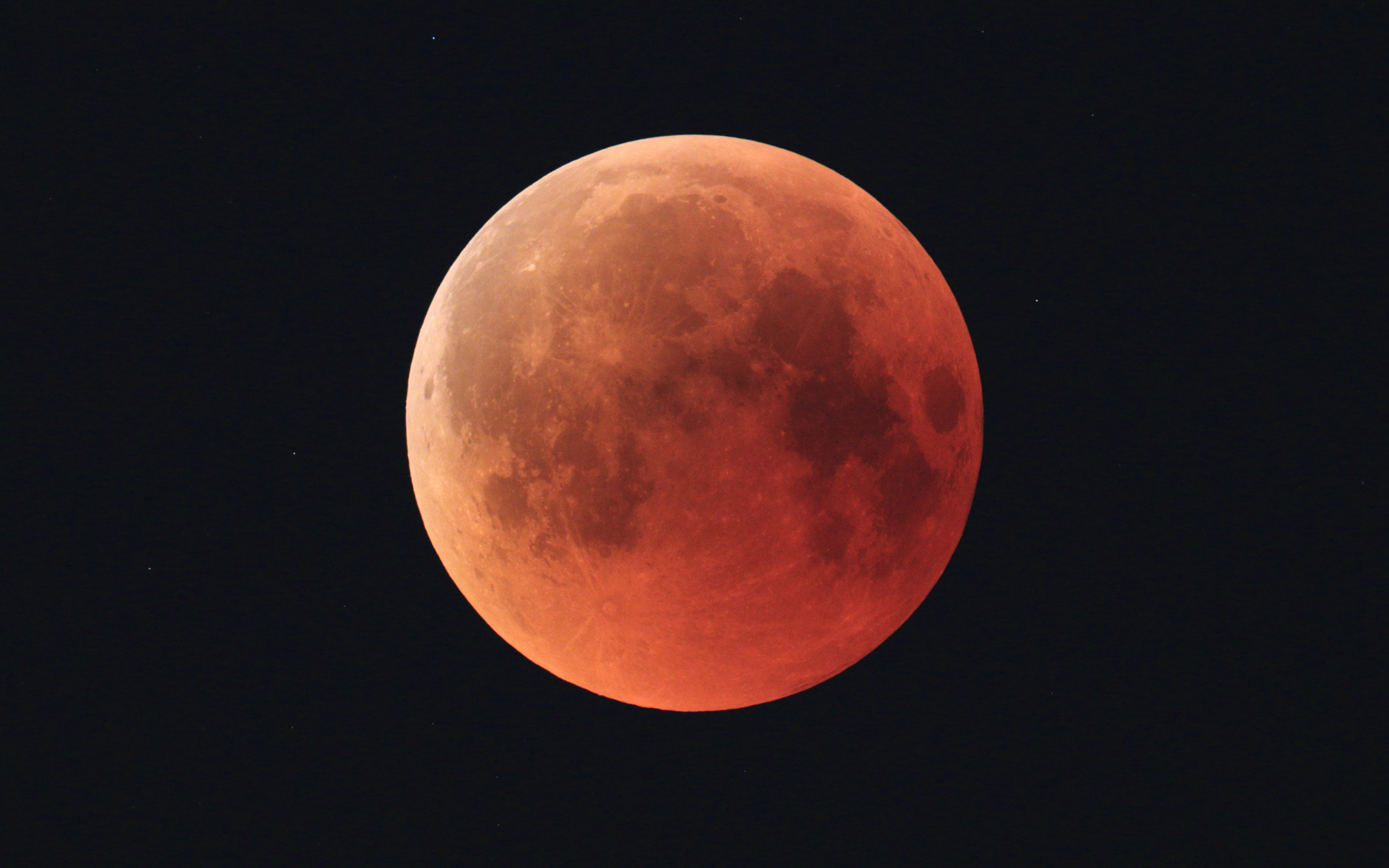 Um das Finsternis-Spektakel in seiner gesamten Länge zu verfolgen, muss man allerdings sehr früh aus dem Bett: Kurz nach 4:30 Uhr beginnt der Mond sich langsam in den Schatten der Erde zu schieben. Dort ist es nicht völlig finster, da die Erdatmosphäre noch immer etwas Sonnenlicht in den Erdschatten lenkt. Wie beim Sonnenuntergang bleiben allerdings nur rote Farben übrig, daher leuchtet der verfinsterte Vollmond in einem gespentischen roten Licht. Das als „Blutmond“ zu bezeichnen, geht allerdings an der Sache vorbei, denn die Phase der totalen Verfinssterung ist eine völlig ruhige und friedliche Angelegenheit.