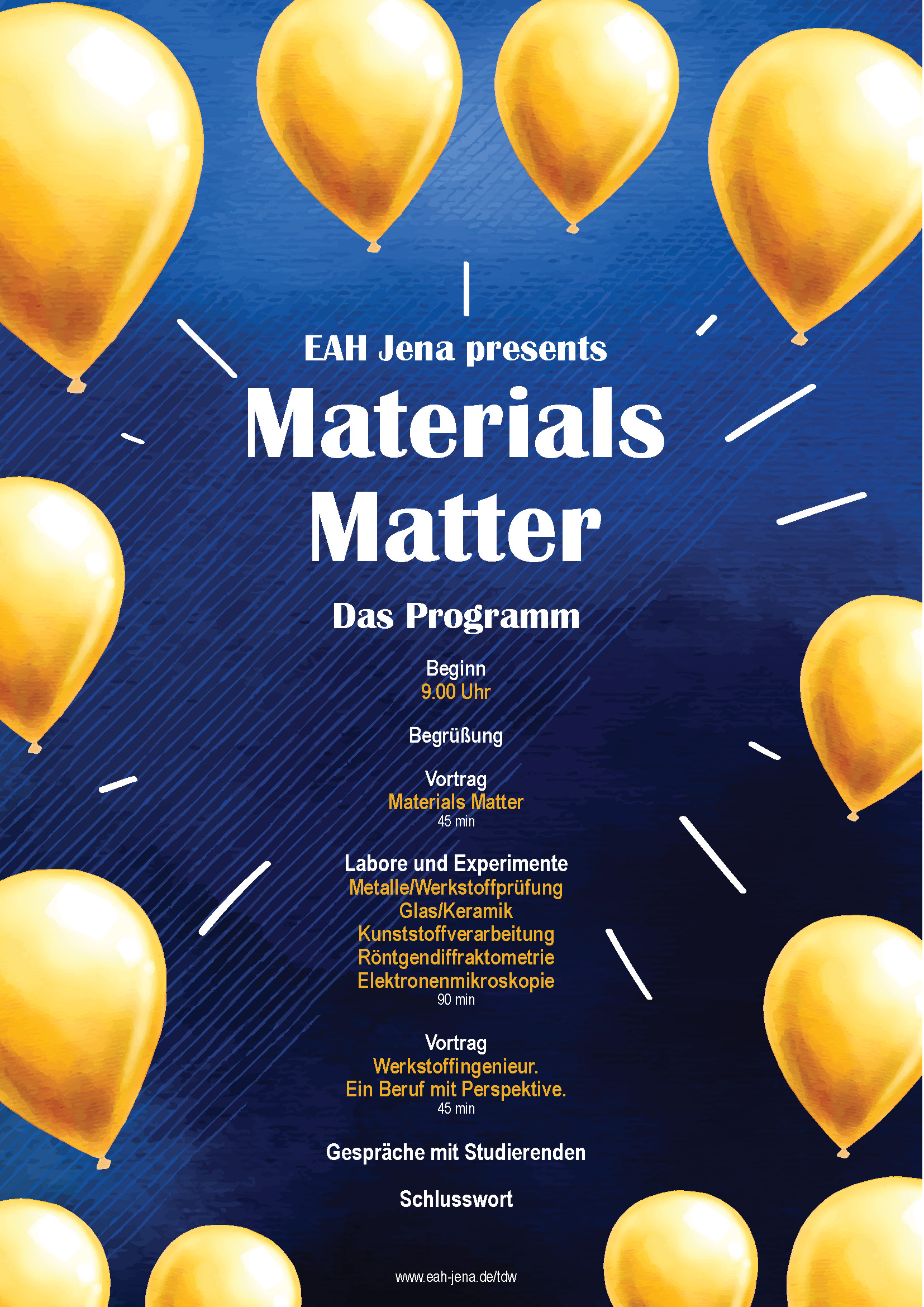 Schülerinnen und Schüler aufgepasst: Am 7. Februar findet der nächste Tag der Werkstofftechnik in der Ernst-Abbe-Hochschule Jena statt. Unter dem Motto „Materials Matter“ zeigen Ingenieurinnen und Ingenieure des Fachbereichs SciTec von 9.00 bis 13.00 Uhr ihre Forschungen mit Metallen, Glas und Keramik sowie Kunststoffen. Vorgestellt werden auch die (fast) unendlichen Möglichkeiten der Elektronenmikroskopie: mit Vergrößerungen bis zu einer Million.