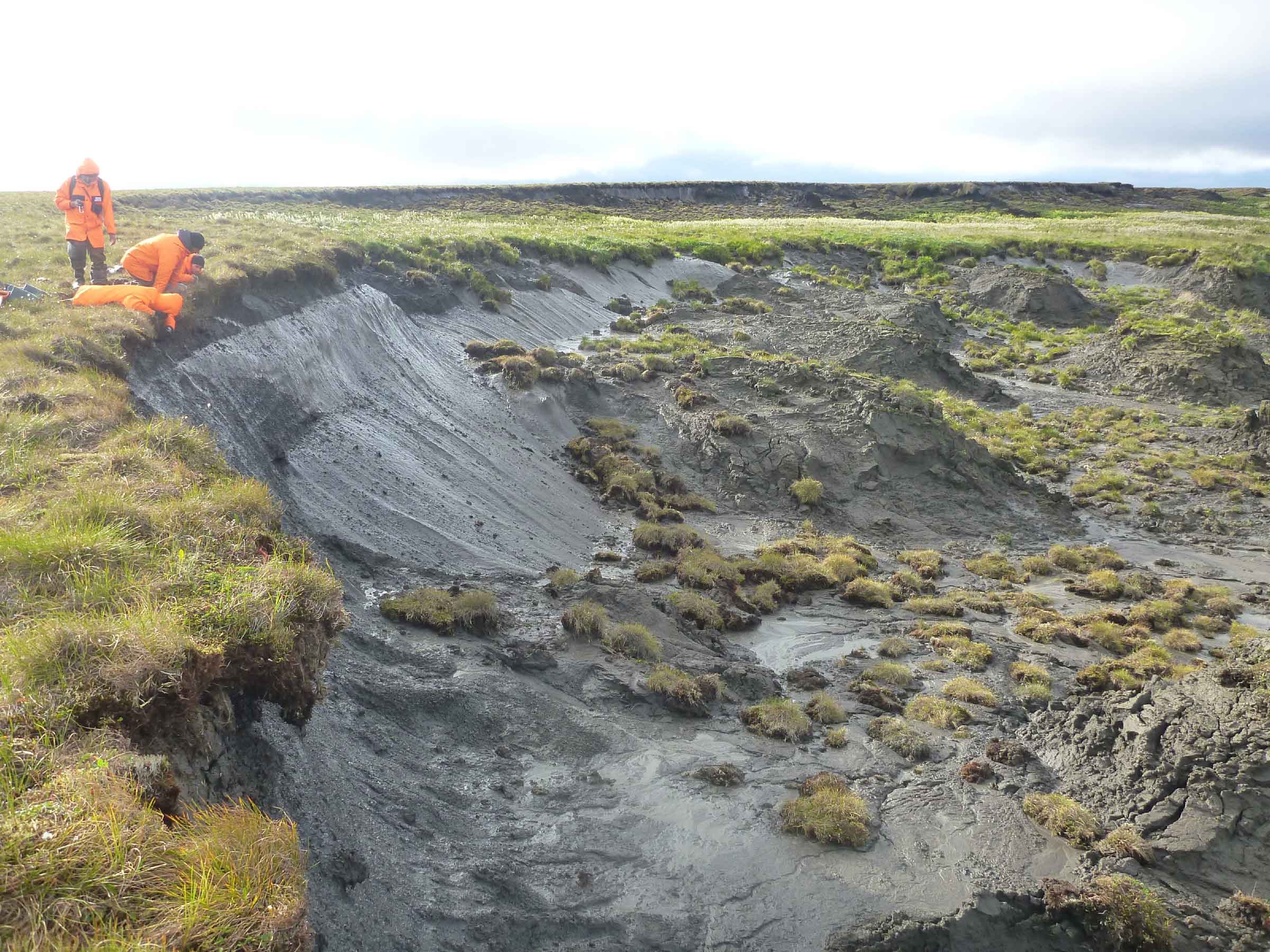 Rund ein Sechstel der Landflächen unseres Planeten gelten als Permafrostgebiete. Das heißt, ihr Boden ist mindestens zwei Jahre lang dauerhaft gefroren. In den meisten Regionen aber steckt die Kälte seit vielen Jahrtausenden im Erdreich, sodass der Permafrost im Extremfall bis in eine Tiefe von 1,6 Kilometer reicht. Vor allem in der Arktis nutzen Menschen den Dauerfrostboden als tragfähigen Untergrund für Häuser, Straßen, Pipelines und Flughäfen. Im Zuge der Erderwärmung aber nimmt die Standfestigkeit dieser Bauten nun ab, was enorme Schäden verursacht. Die Permafrostböden enthalten außerdem jede Menge konservierter Pflanzen- und Tierreste. Sollte dieses organische Material gemeinsam mit dem Permafrost auftauen, würden Mikroorganismen die Überreste zersetzen. Ein Prozess, bei dem so viel Kohlendioxid und Methan emittiert werden könnte, dass die globale Temperatur bis zum Jahr 2100 um weitere 0,13 bis 0,27 Grad Celsius ansteigen würde.
