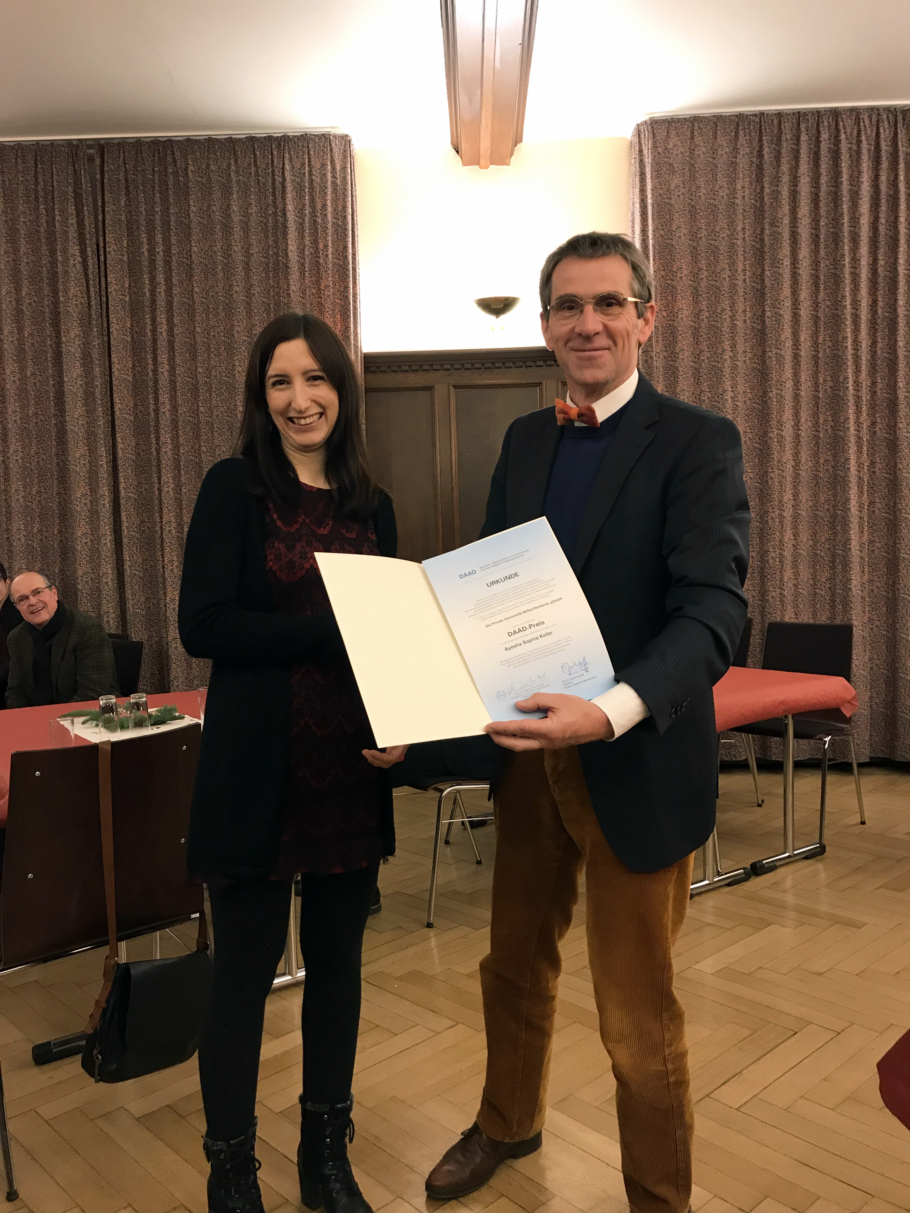 Um der zunehmenden Zahl der internationalen Studierenden an deutschen Hochschulen ein Gesicht zu geben und ihre Bedeutung für die Gemeinschaft dort zu dokumentieren, haben die Hochschulen jedes Jahr die Möglichkeit, einer oder einem Studierenden den Preis des Deutschen Akademischen Austauschdienstes (DAAD) zu verleihen. Die prämierten Studierenden stehen dabei für ihre Kommilitoninnen und Kommilitonen aus der ganzen Welt. Die Auszeichnung der Universität Witten/Herdecke (UW/H) erhielt in diesem Jahr die Schottin Ayesha Keller (29), die in Witten den Master „Philosophy, Politics and Economics“ (PPE) studiert.