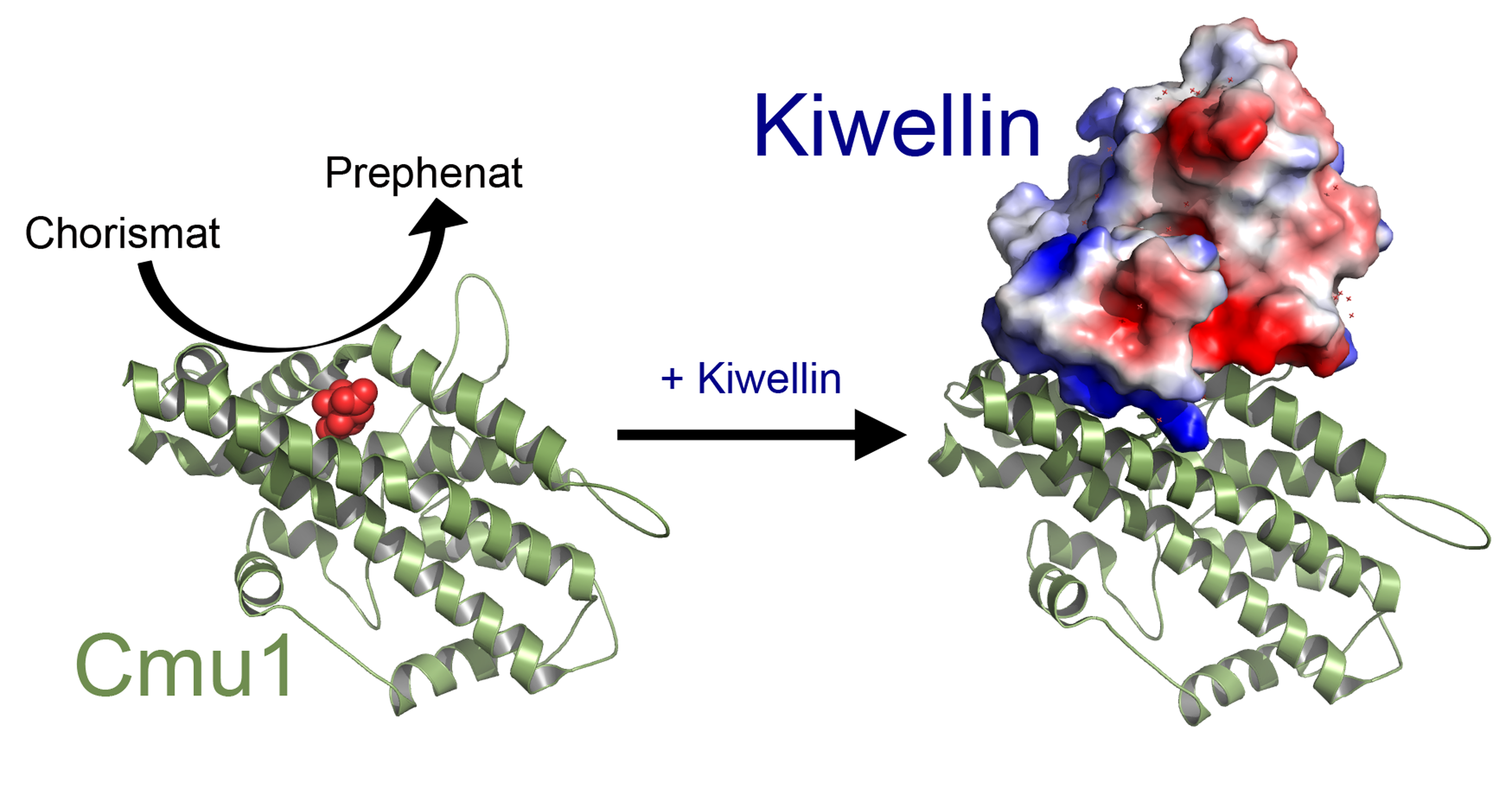 In der Studie fanden die Forscherinnen und Forscher um Prof. Dr. Regine Kahmann vom Max-Planck-Institut für terrestrische Mikrobiologie und Prof. Dr. Gert Bange vom Zentrum für synthetische Mikrobiologie und dem Fachbereich Chemie der Philipps-Universität Marburg ein Protein, das die Aktivität von Cmu1 sehr erfolgreich hemmt: Kiwellin. Die Forscherinnen und Forscher konnten außerdem den genauen Mechanismus durch Röntgenkristallographie beschreiben. „Die Struktur zeigt eindrücklich, dass das Abwehrprotein den Zugang der Substrate und damit die katalytische Funktion der Cmu1 blockiert“, erklärt Bange.