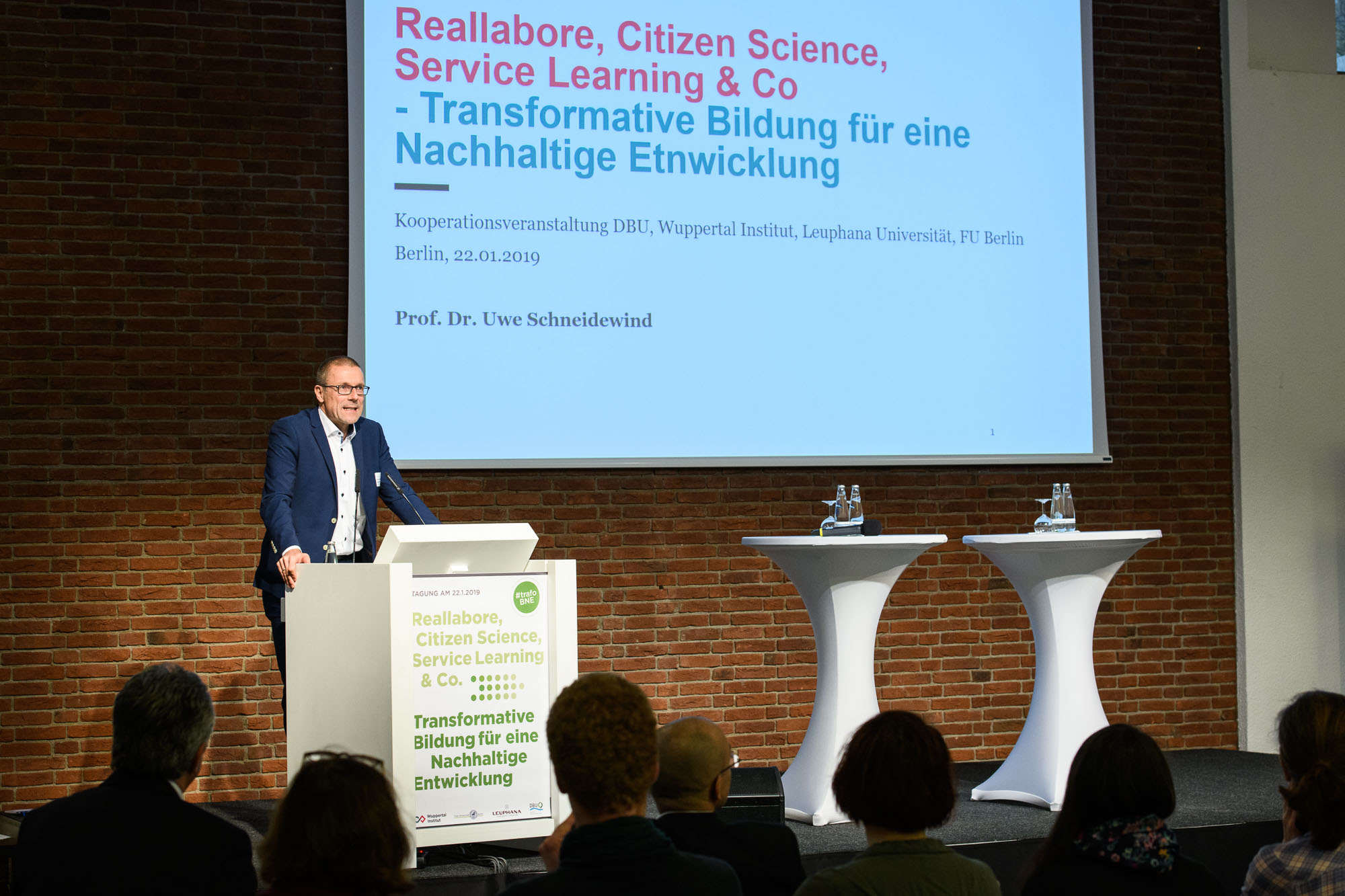 Ausgerichtet wurde die Tagung „Reallabore, Citizen Science, Service Learning & Co.“ vom Wuppertal Institut, der Deutschen Bundesstiftung Umwelt (DBU), der Leuphana Universität und dem Institut Futur der Freien Universität Berlin. Die vier Partner gehören zu den einflussreichen Institutionen im Bereich der Bildung für nachhaltige Entwicklung.