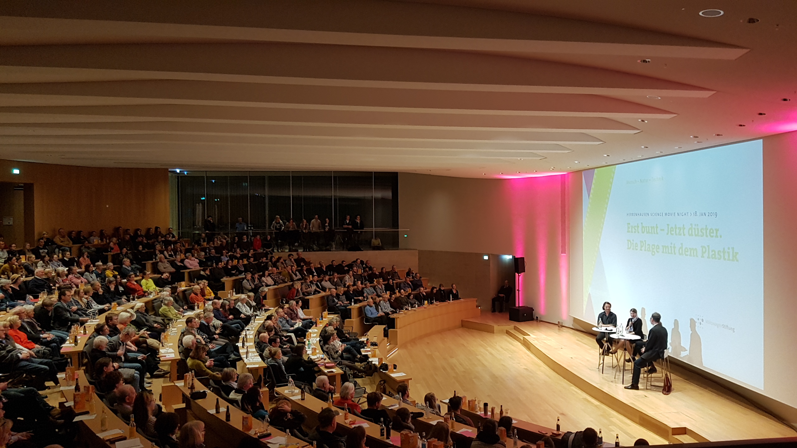 (Hannover, 25.01.2019) Wie verändern Kunststoffe unser Leben? Können Biokunststoffe helfen, um das Problem der Umweltverschmutzung durch Kunststoffe zu lösen? IfBB-Leiterin Prof. Andrea Siebert-Raths war am vergangenen Freitag bei der 7. Herrenhausen Science Movie Night - Film trifft Wissenschaft – „Plastic Planet“ auf dem Podium zu Gast und klärte über Chancen und Möglichkeiten von Biokunststoffen auf. Über 380 Gäste begeisterten sich für das Thema und diskutierten am Ende lebhaft mit.