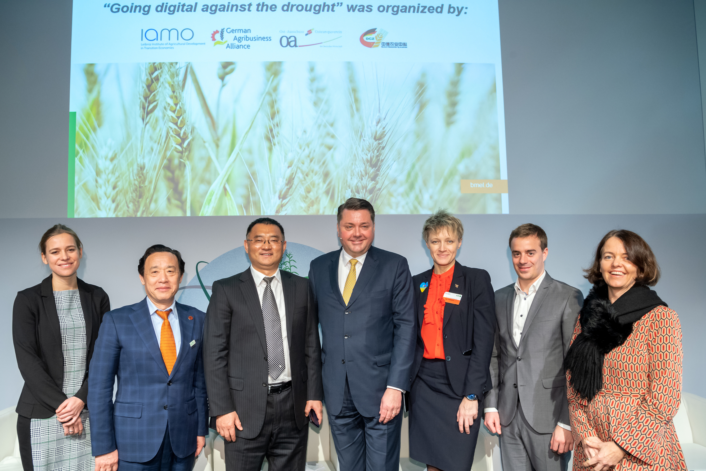 As became evident last summer, enduring dry periods are since recently causing extensive damage to the agriculture and threatening the livelihood of the rural population also in Central Europa. Countering this development effectively calls for the use of the latest technology to record and evaluate precise yield data. Against this background, on 18 January 2019 more than 130 international guests from the fields of politics, business and science came together at the panel discussion “Going digital against the drought - New technologies and challenges in their implementation” in Berlin, Germany, to discuss findings thus far, digital solutions and obstacles to their implementation. The expert panel was organised by IAMO together with the German Agribusiness Alliance at the German Eastern Business Association and the German-Sino Agricultural Center.