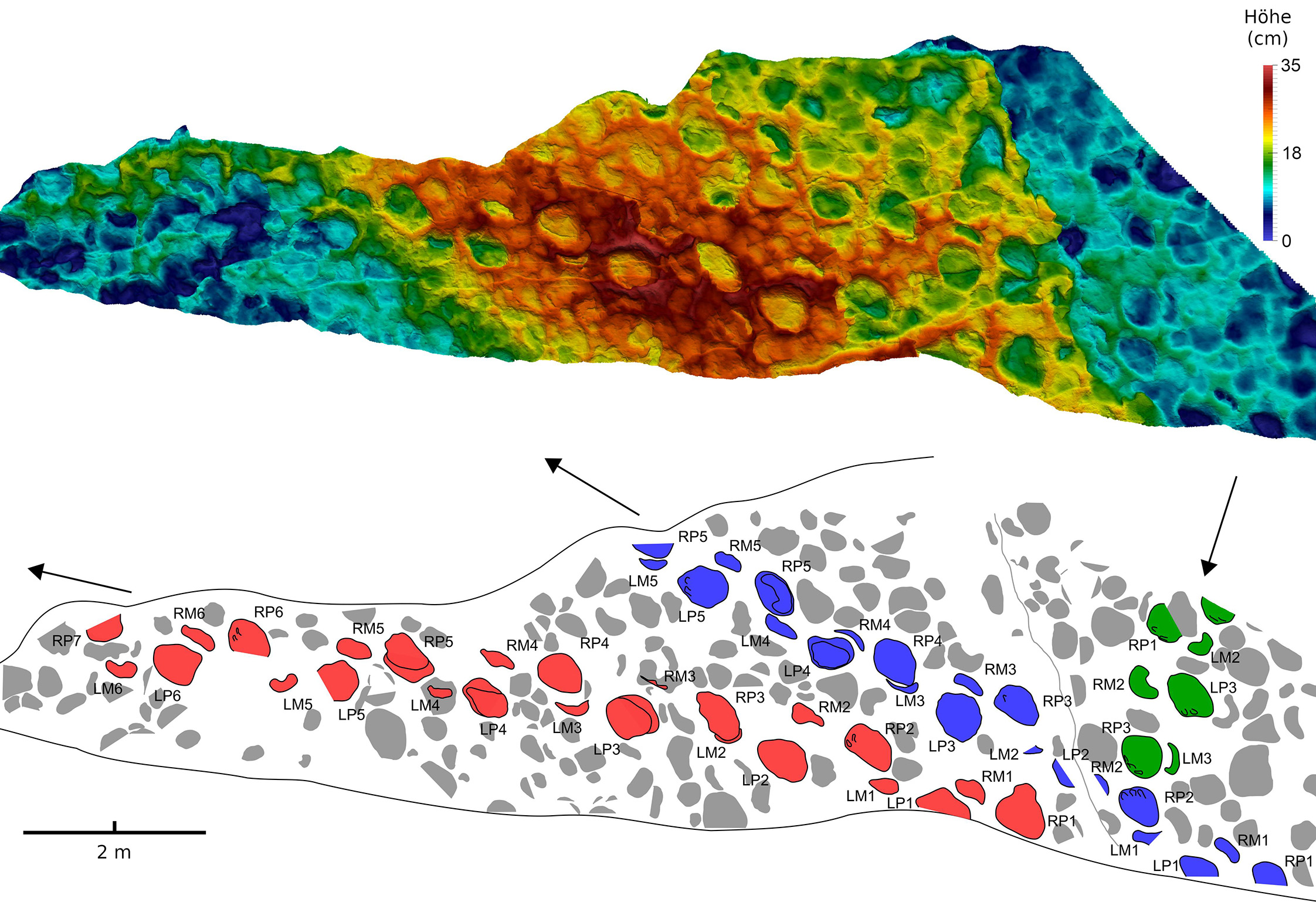 Die fehlenden Puzzlestücke lassen sich jedoch mithilfe fossiler Fußspuren der Riesen rekonstruieren. Ein internationales Forscherteam aus Japan, Marokko und Deutschland unter Leitung der Universität Bonn hat nun eine besondere Spurenfundstelle in Marokko am Fuß des Atlas-Gebirges untersucht. Die Fundstelle besteht aus einer bei der Gebirgsbildung senkrecht gestellten Fläche von 54 Mal sechs Metern Größe, die hunderte einzelner Trittsiegel zeigt, die sich teilweise überlappen. Ein Teil dieser Fußabdrücke konnte insgesamt neun Fährten (Abfolgen einzelner Trittsiegel) zugeordnet werden. „Das Herausarbeiten individueller Fährten aus diesem zerstampften Durcheinander von Fußspuren war Detektivarbeit und nur durch die Analyse hochauflösender 3D-Modelle am Computer möglich“, sagt Dr. Oliver Wings vom Zentralmagazin Naturwissenschaftlicher Sammlungen der Martin-Luther-Universität Halle-Wittenberg.