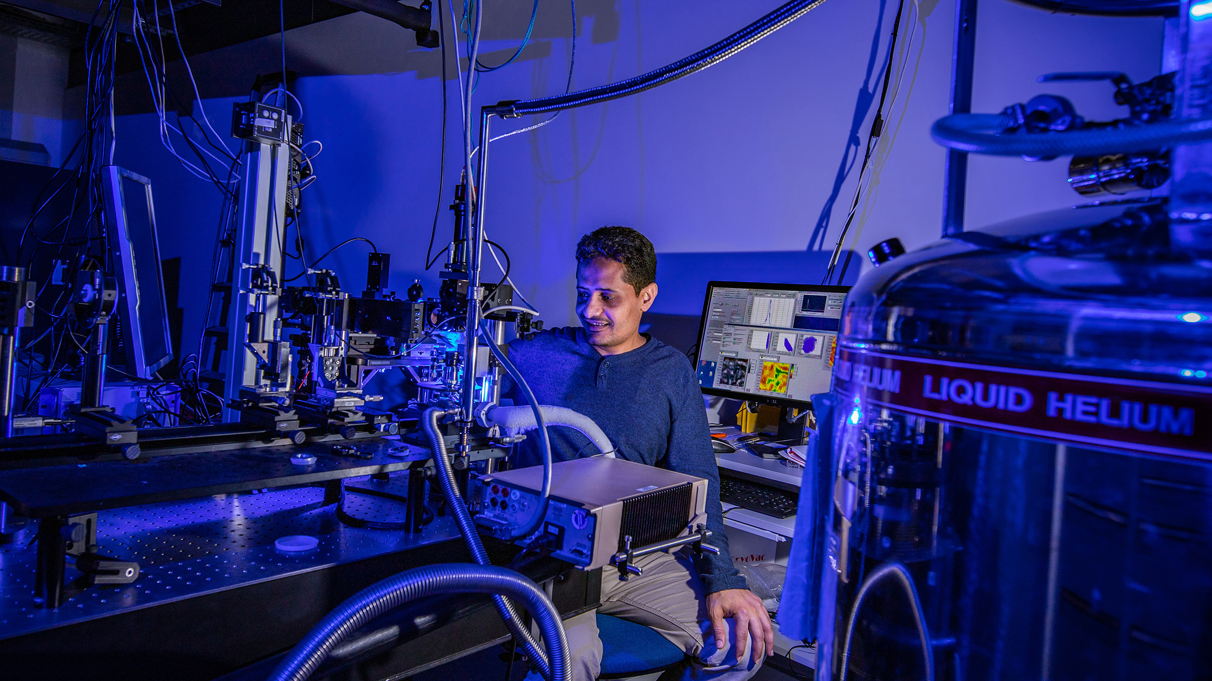 Diese begehrte Flüssigkeit benötigen die Wissenschaftlerinnen und Wissenschaftler des Instituts insbesondere für Versuche im Bereich extrem tiefer Temperaturen. In diesem Bereich können viele störende Einflüsse ausgeschlossen werden, um physikalische Phänomene selektiv zu untersuchen. „Die Experimente bei tiefen Temperaturen sind dabei in gleichem Maße zur Erforschung grundlegender und angewandter physikalische Phänomene notwendig“, sagt Prof. Dr. Ulrich Schwarz. Seine Professur für Experimentelle Sensorik an der TU Chemnitz gehört zu den eifrigsten Nutzern des flüssigen Heliums. Aktuell untersucht das Forschungsteam an Hochleistungs-Leuchtdioden (LED) die Umwandlung von Strom zu Licht und taucht dabei mit Hilfe der Photolumineszenz tief in den Mikrokosmos vor. „Ziel ist es, die Effizienz von Leuchtdioden weiter zu steigern. Wir müssen deshalb verstehen, welche Prozesse beim Ladungsträgertransport zwischen den Halbleiterschichten ablaufen, um sie letztendlich auch gezielt beeinflussen zu können“, so Schwarz. Dies sei nicht nur ein spannendes Thema innerhalb der Grundlagenforschung, auch die Industrie sei an den Ergebnissen sehr interessiert. „So forschen wir beispielsweise seit einiger Zeit gemeinsam mit der Osram Opto Semiconductors GmbH auf diesem Gebiet“, fügt der Physikprofessor hinzu.