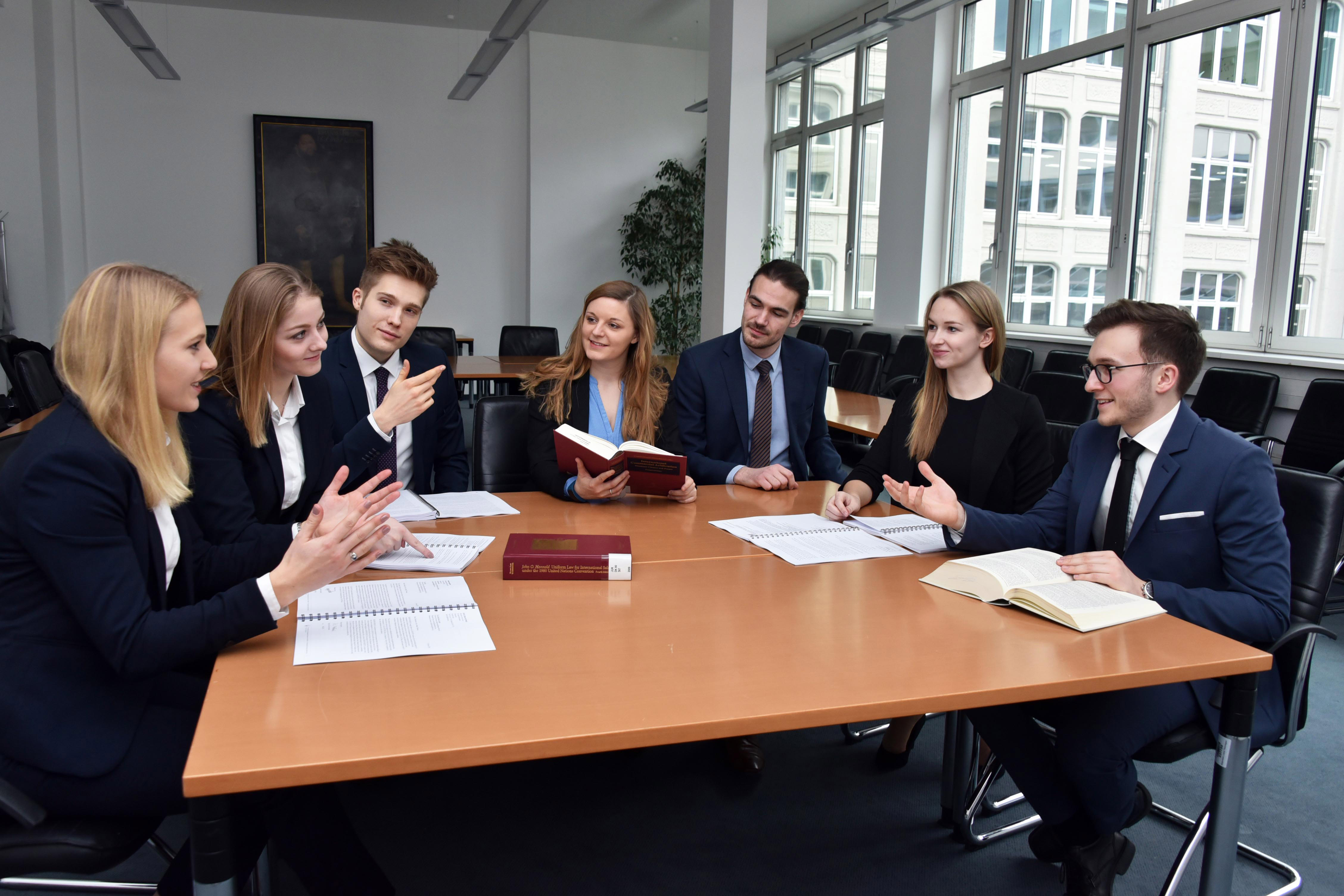 Dafür erweitert das Team stetig sein Wissen über das internationale Wirtschaftsrecht und feilt an den rhetorischen Fähigkeiten. Selbst Anstandsregeln wie die in Asien übliche, beidhändige Übergabe von Visitenkarten werden für den Auftritt in Hongkong einstudiert.