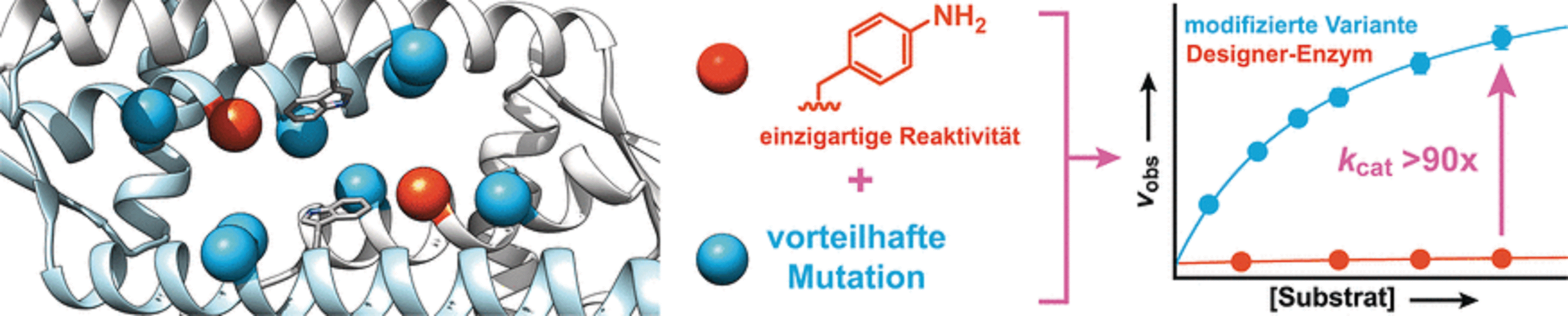 „Diese drastische Zunahme basiert auf einer Verstärkung der inhärenten katalytischen Aktivität der Anilin-Seitenkette – ähnlich wie bei natürlichen Enzymen“, berichten die Forscher. „Nach diesem Prinzip wollen wir weitere organische Katalysatoren als Seitenketten in Enzyme einbringen und diese mithilfe einer gerichteten Evolution in hochwirksame Designer-Enzyme umwandeln, die synthetisch relevante Reaktionen, die sonst nur sehr langsam ablaufen, rasch und effizient durchführen.“