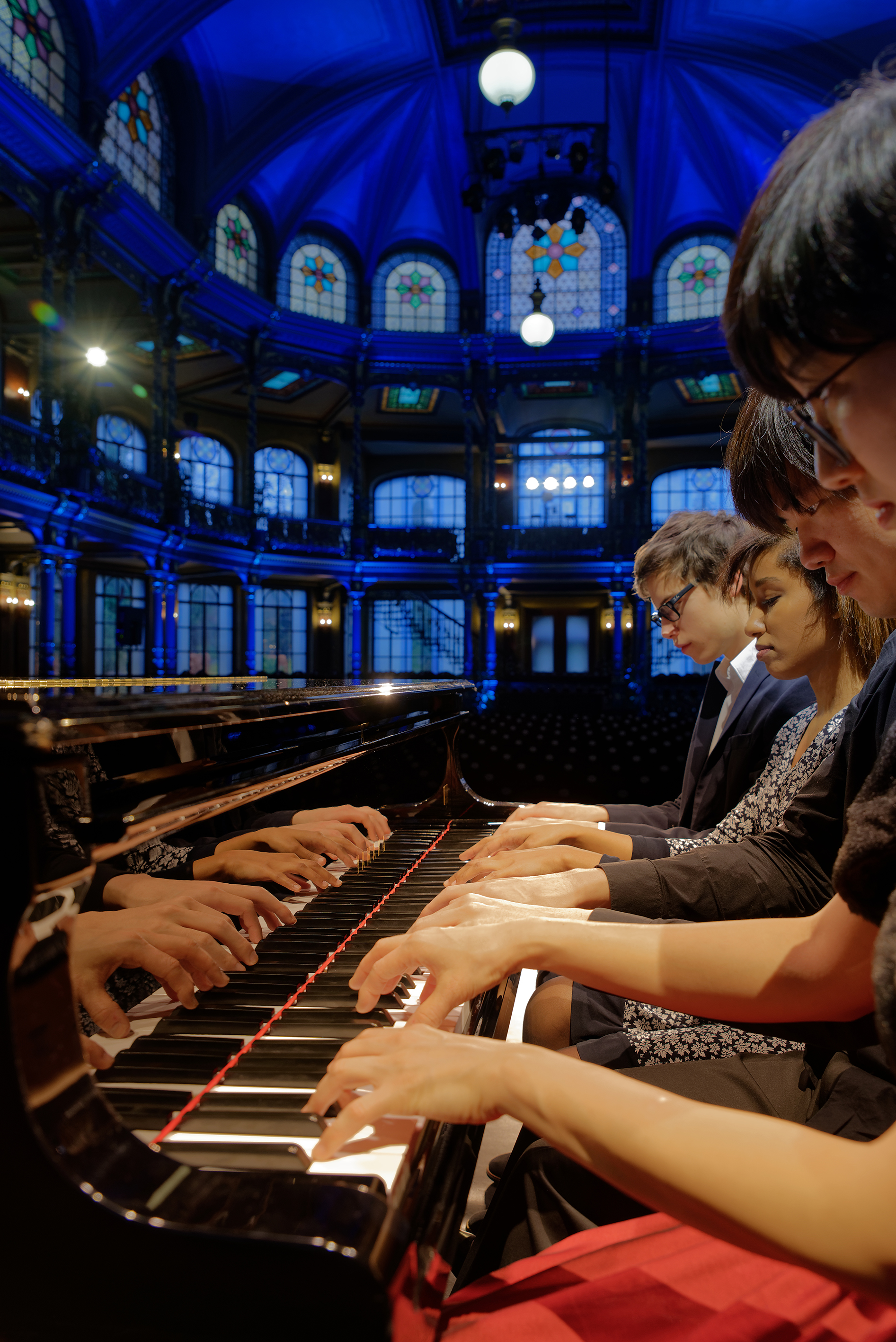 Die derzeitigen Exzellenzpianistinnen und - pianisten der verschiedenen LMZ-Klassen interpretieren mit zwei und bis zu acht Händen tänzerische Kompositionen von Scarlatti und Mozart über Brahms und Ravel bis zu Stravinski. Virtuos, leidenschaftlich und vielseitig bringen die Studierenden nicht nur musikalisch die ganze Welt auf die Bühne. Die zehn ausgezeichneten Tastentalente bringen auch das Temperament ihrer Heimatländer mit: Deutschland, Russland, Weißrussland, China, Japan, Korea, Spanien und Rumänien.
