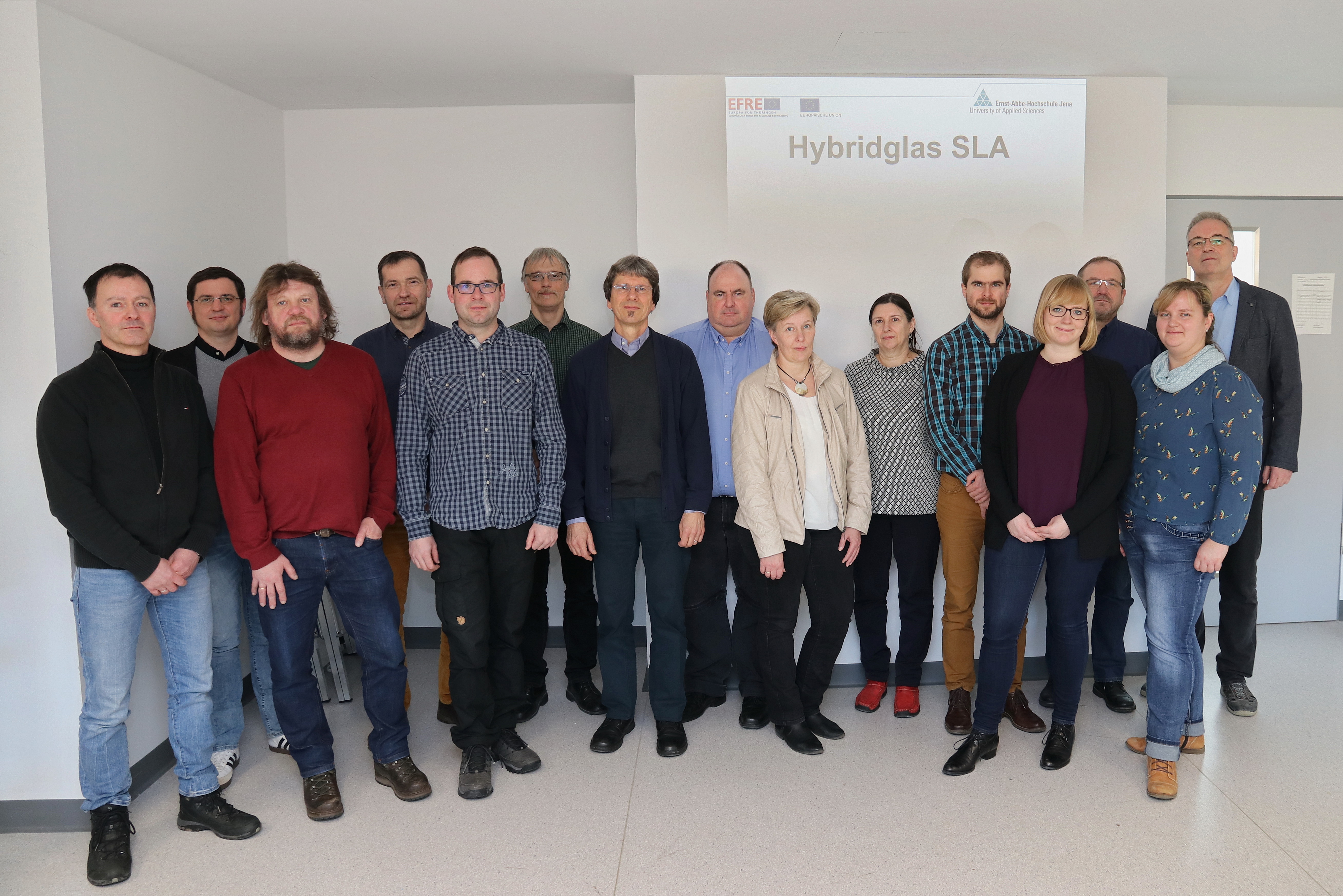 Mit einem Kick-off-Treffen aller beteiligten Projektpartner startete heute in der Ernst-Abbe-Hochschule Jena das Verbundprojekt „Hybridglas SLA“ („Verfahrens- und Technologieentwicklung zur additiven Fertigung strukturierter optischer Komponenten aus hochschmelzenden Gläsern mittels Hybrid-Stereolithographie“). Das Forschungsprojekt ist Teil des Förderprogramms „Richtlinie des Freistaates Thüringens zur Förderung von Forschung, Technologie und Innovation“ und wird durch den Freistaat Thüringen aus Mitteln des Europäischen Fonds für regionale Entwicklung gefördert.