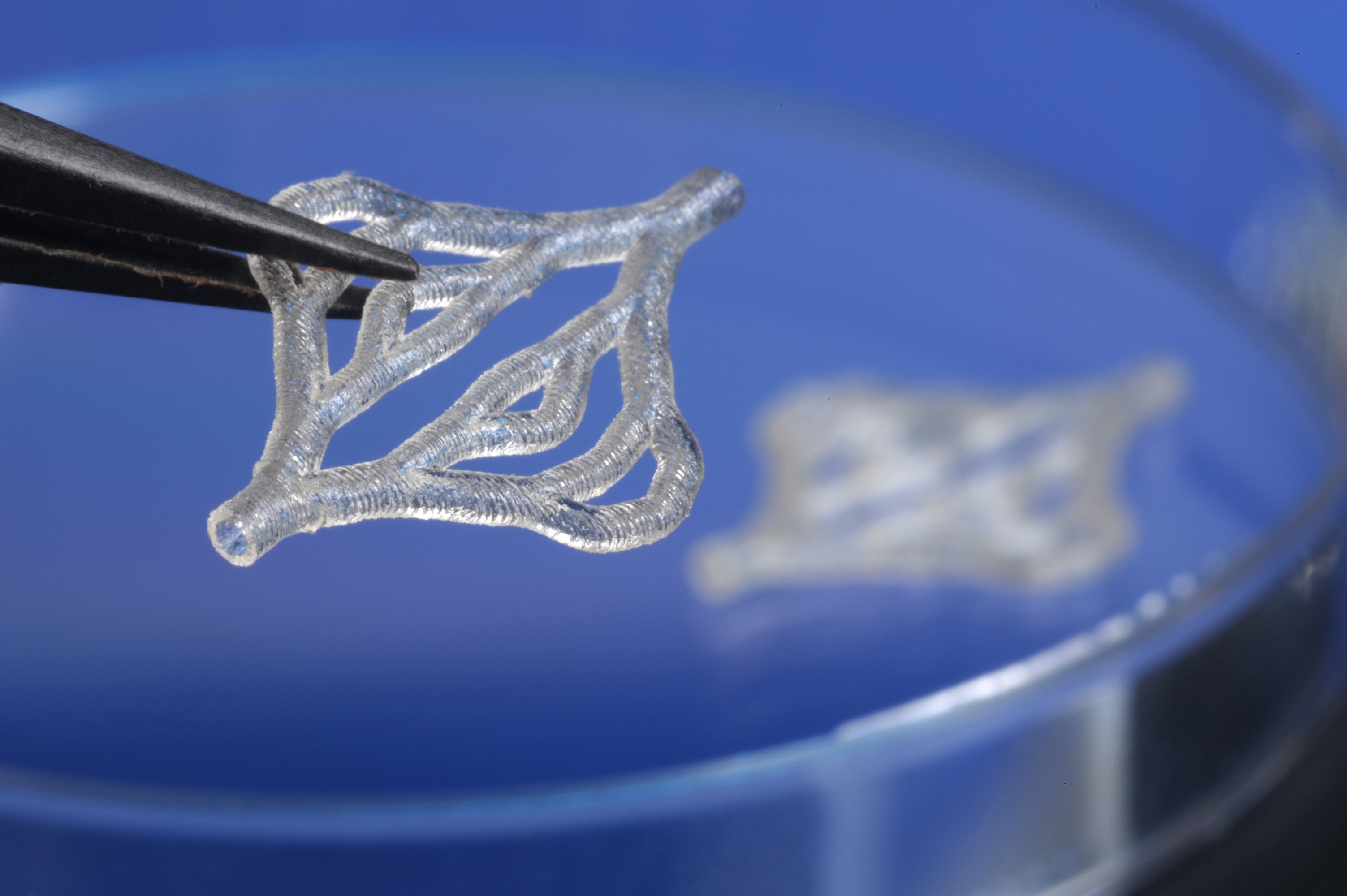 Zusätzlich wird auch eine Steuerungssoftware entwickelt, die anhand von CAD-Daten selbstständig entscheiden soll, wann ein Wechsel zwischen den zwei Quellen sinnvoll ist. Am Ende geht es darum, dass dieser Übergang reibungslos funktioniert und die Strukturen in einem Harzbad ohne Wechsel des Photoharzes aufgebaut werden können. Das Projektteam untersucht dafür verschiedene Materialien und optimiert die Prozesskombination im Detail.