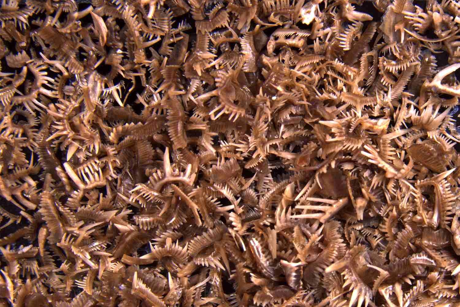 It is not surprising, therefore, that this skeleton tissue became so successful in evolution. When it developed, around 500 million years ago, it led to an explosion in the diversity of species. ‘The skeleton led to teeth, scales and finally bones being developed. Teeth, for example, allowed species to attack new prey,’ Dr. Jarochowska continues. ‘They became more specialised over time, depending on what the respective species ate.’ Vertebrates with skeletons also conquered aquatic ecosystems. ‘Before, actively swimming animals were a rarity. Hard structures are needed for organisms to be able to swim and withstand water resistance,’ says Jarochowska.