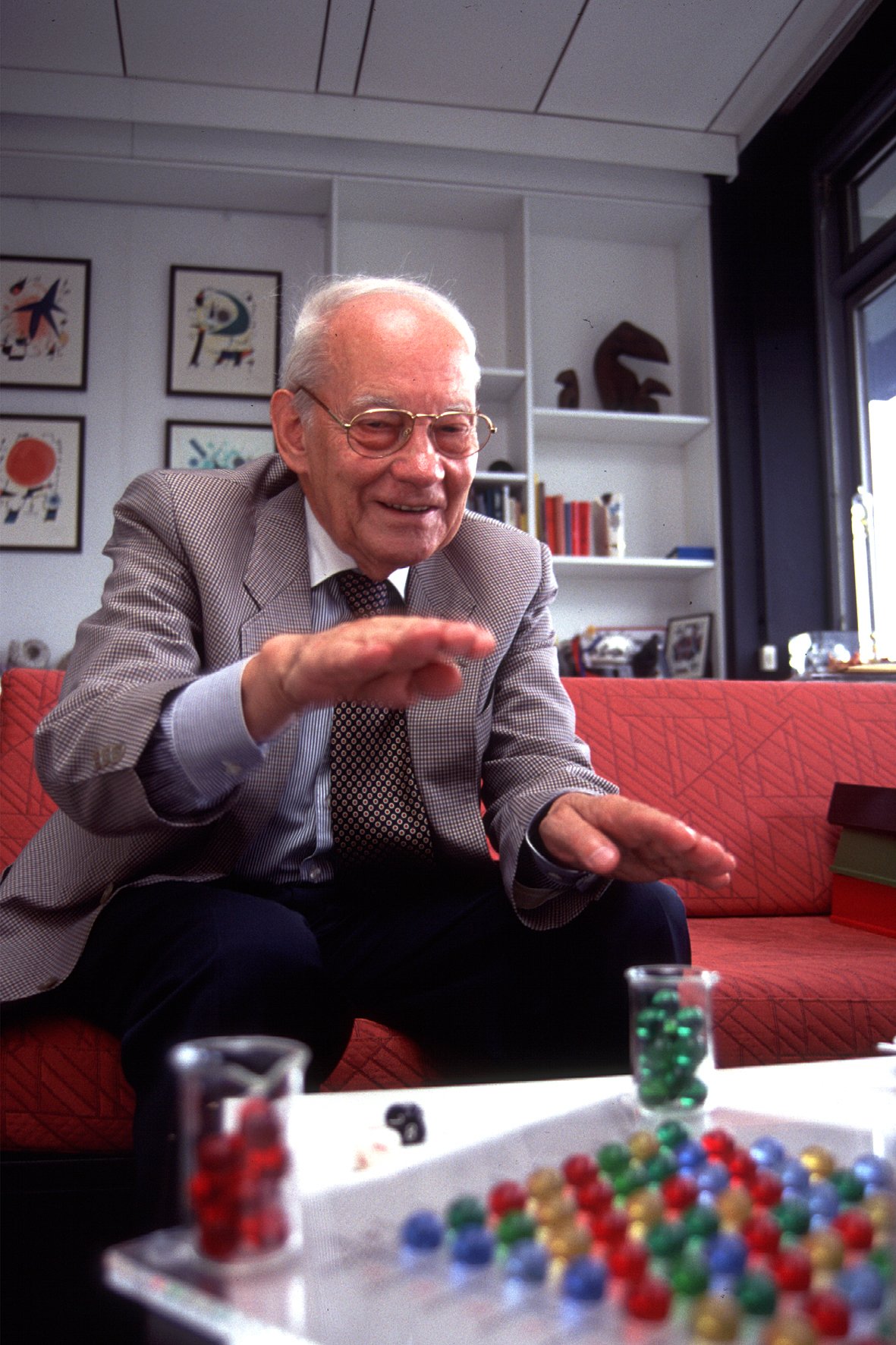 “Everything which is new has to come out of fundamental research, otherwise it is not new,” Manfred Eigen once said. But he has not only discovered new things, he also created new applications and products. His theories on the self-organization of complex molecules and his development of evolutionary machines, in which he put these theories into practice, led to a new branch of research in the 1980s – evolutionary biotechnology. The evolution machines, engineered for industrial applications by Manfred Eigen's team at the MPI for Biophysical Chemistry, were used successfully to investigate basic mechanisms of evolution in time-lapse in the laboratory. They were further employed in single molecule detection to help in finding new active substances and to use them for drug development. In the course of his career, Manfred Eigen thus established two large scientific schools, first in chemical reaction kinetics and later in the development of a molecular approach to evolutionary biology.