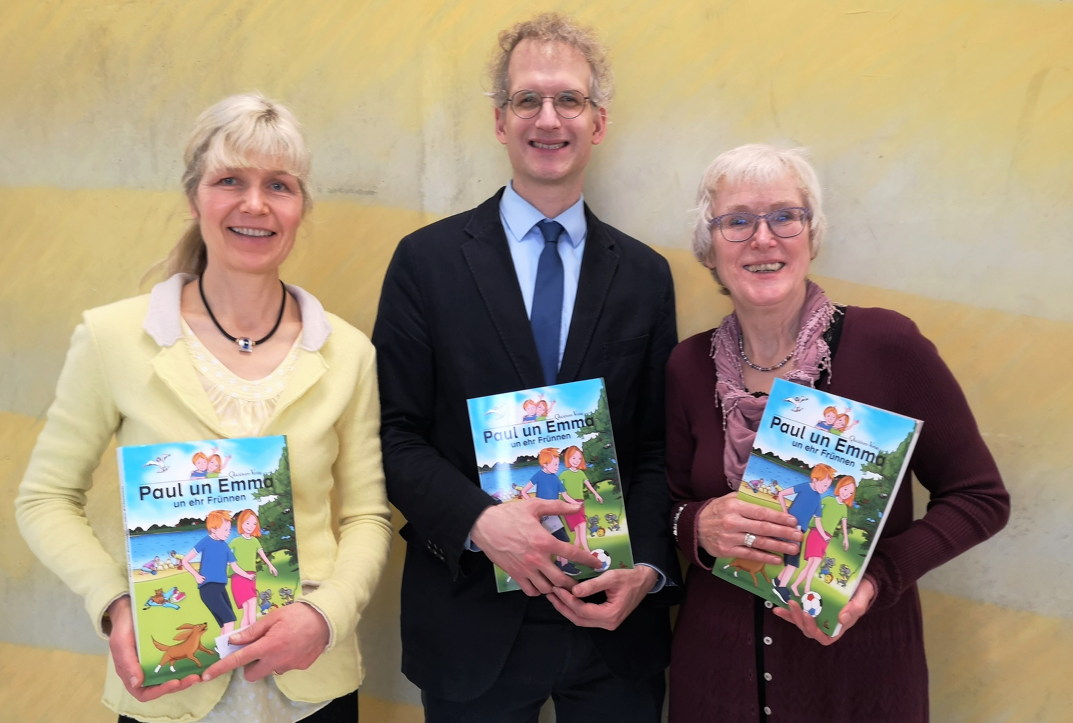 Der Minderheitenbeauftragte der Landesregierung, Johannes Callsen, bedankte sich beim Autorenteam des neuen Niederdeutsch-Lehrbuches und unterstrich, wie wichtig es sei, Schülerinnen und Schüler schon früh an die niederdeutsche Sprache heranzuführen: „‘Paul un Emma un ehr Frünnen‘ ist mehr als ein Lehrbuch – es ist für Kinder ein Schlüssel zu unserer Heimatsprache. Es ist wichtig, dass Kinder ein Gefühl für das Niederdeutsche bekommen, neugierig werden und merken, dass Plattdeutsch bei uns dazugehört: Deshalb wird die Landesregierung den Handlungsplan Sprachenpolitik für unsere Regional- und