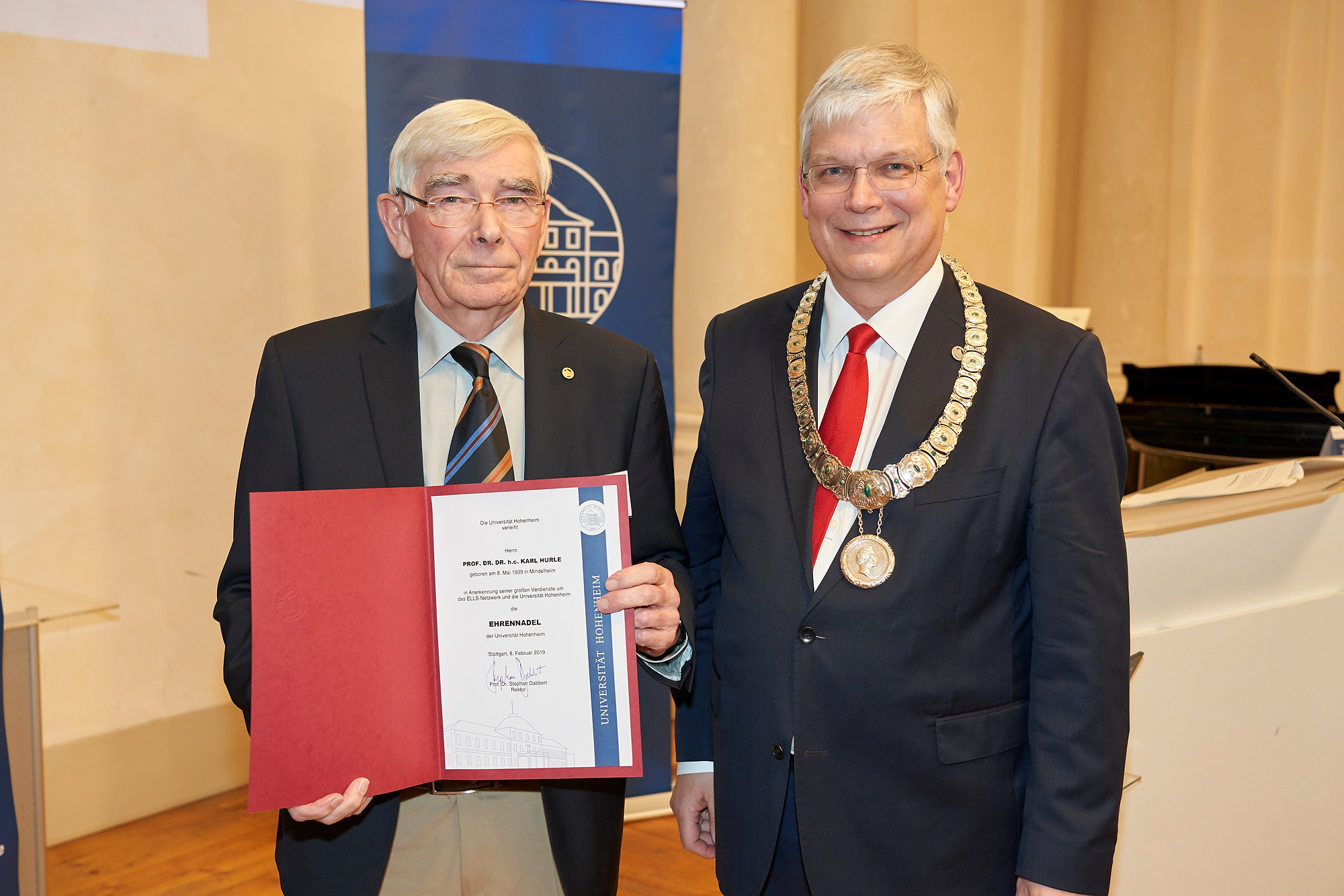 Besondere Verdienste: Prof. Dr. Dr. h.c. Karl Hurle erhält Ehrennadel der Uni Hohenheim