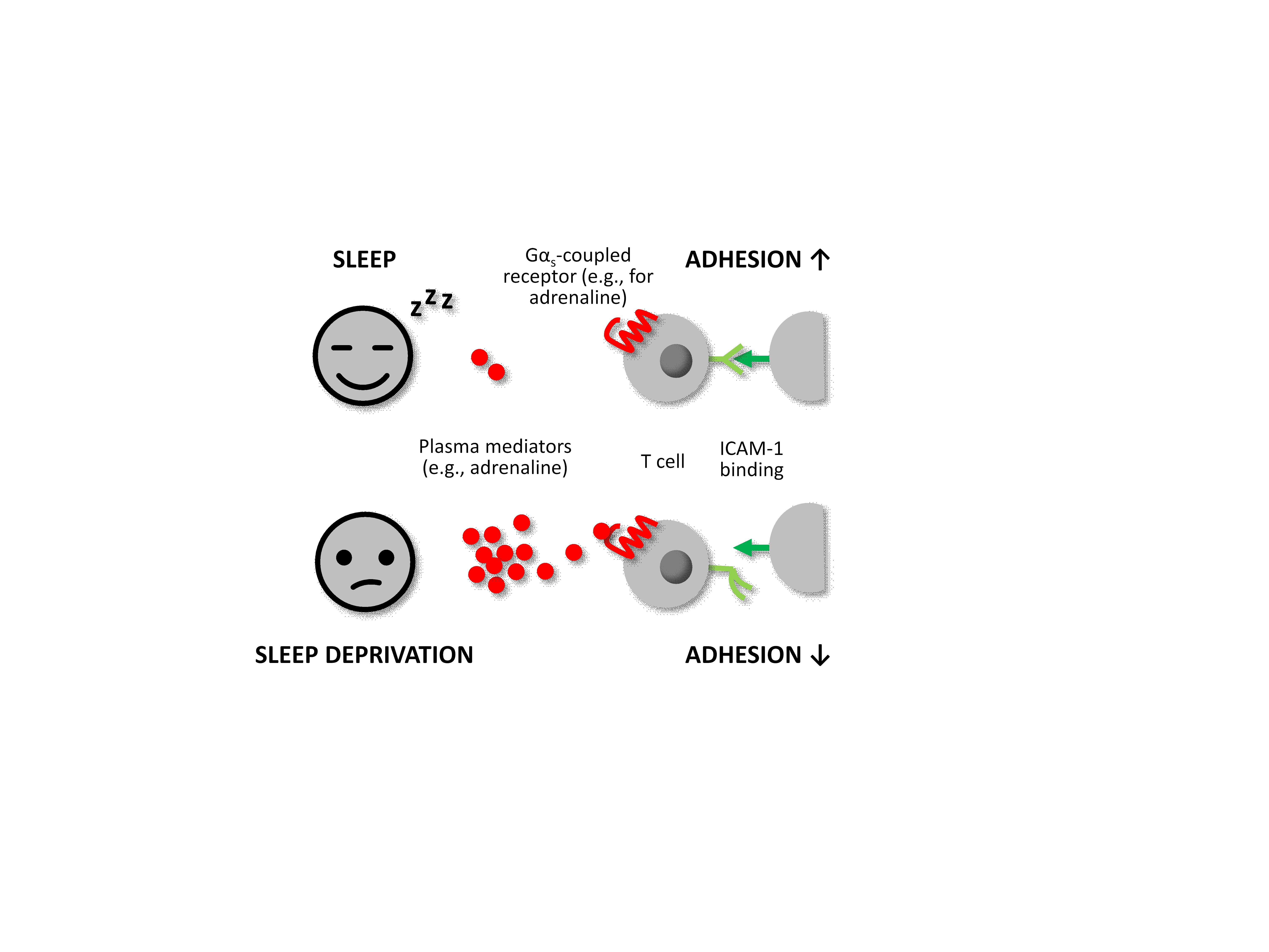 In another experiment, the team was able to reverse this suppression of T-cell function by blocking Gαs-coupled receptors. Amongst other substances, the stress hormone adrenaline and prostaglan-dins, which play a role in inflammation, bind via these receptors. "This shows that even following brief sleep deprivation soluble molecules activate these receptors and thereby impair the adhesion of the T cells," says Luciana Besedovsky, head of the study.
