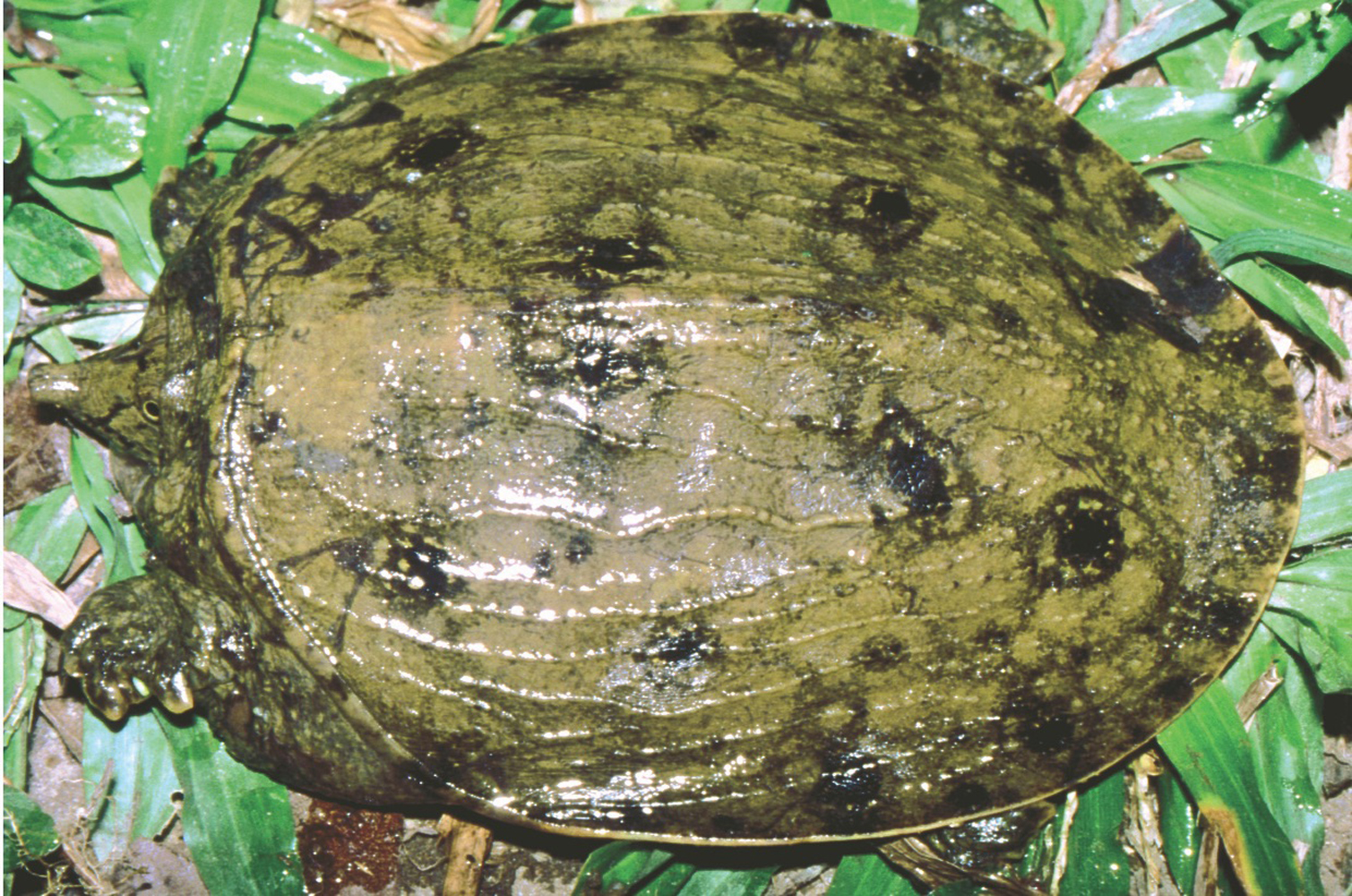 Gefahr droht der neu entdeckten Art nicht nur durch die Fischerei – Weichschildkröten sind ein geschätztes Nahrungsmittel in der ostasiatischen Küche – und Lebensraumvernichtung: In Nordvietnam wurde offenbar auch noch eine fremde Art angesiedelt, die in Konkurrenz zur Flecken-Weichschildkröte treten und sie möglicherweise verdrängen könnte.