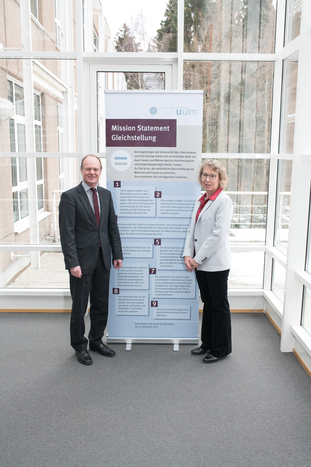 Angeregt und ausgearbeitet hatte das Mission Statement die Gleichstellungsbeauftragte Professorin Susanne Biundo-Stephan zusammen mit dem Team des Gleichstellungsreferats. Für Biundo-Stephan, die als erste Frau an der Uni Ulm auf einen Informatik-Lehrstuhl berufen wurde, besteht eines der wichtigsten Ziele darin, den Anteil an Professorinnen zu erhöhen. Angelehnt an die Selbstverpflichtung sollen nun Berufungsverfahren analysiert und reformiert werden.