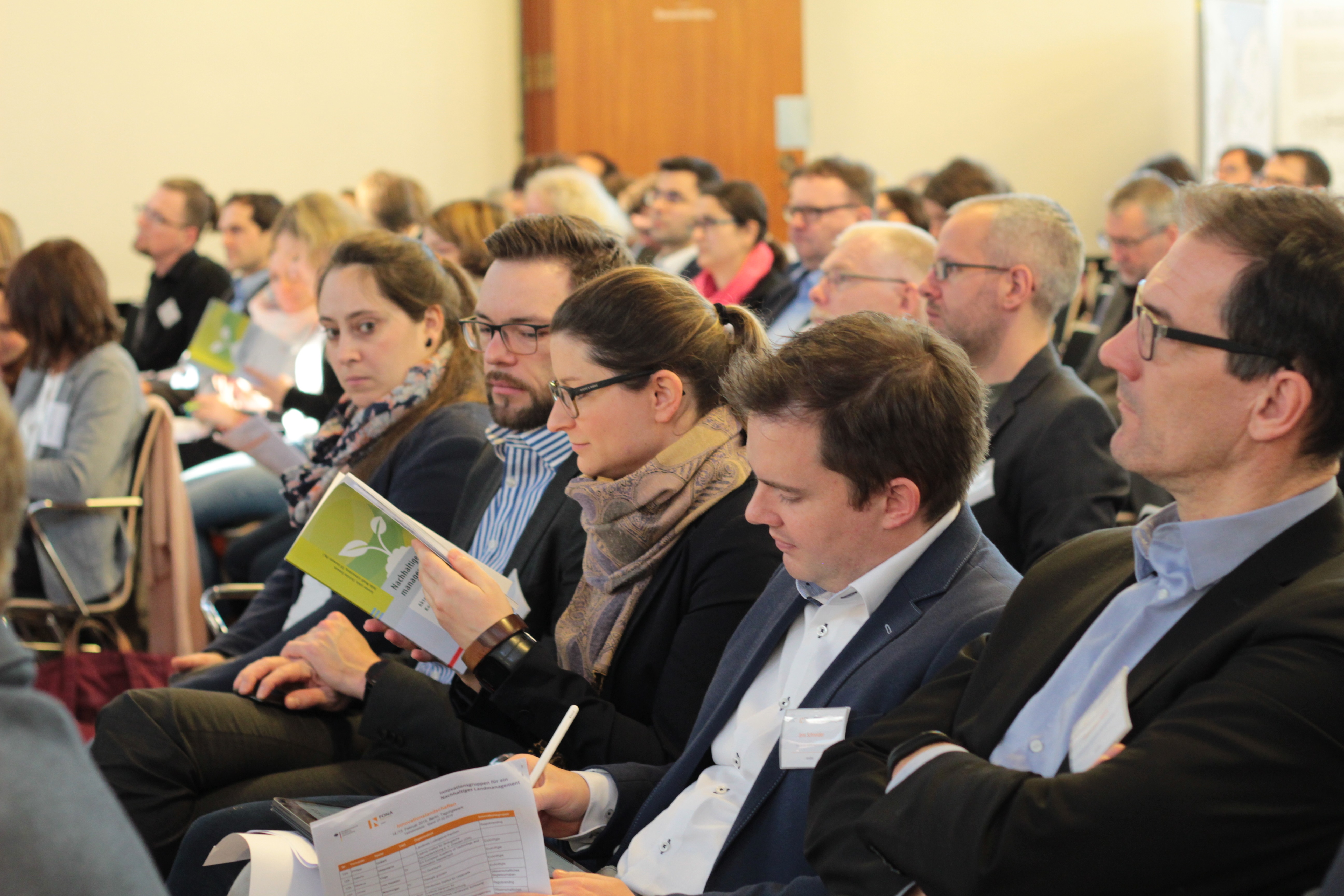 Vom 14. bis 15. Februar 2019 trafen sich rund 150 Teilnehmende zur Abschlusskonferenz der BMBF-Fördermaßnahme „Innovationsgruppen für ein Nachhaltiges Landmanagement“ in Berlin. Den Besuchern der Konferenz wurden zentrale Ergebnisse und innovative Konzepte der Projekte vorgestellt. Mit dabei waren unter anderem Projekte, die Mehrfachnutzungen von Land durch Agrophotovoltaikanlagen oder Agroforstsysteme ermöglichen, Konfliktlösungen mittels Energieszenarios oder Konzepte für das Aushandeln von Interessen im Kulturlandschaftsmanagement bereitstellen. Zu der projektübergreifenden Frage, wie diese neuen Lösungen die bisherige Praxis ergänzen und verändern können, ist zur Konferenz der Ergebnisband „Nachhaltige Landnutzung managen“ erschienen.