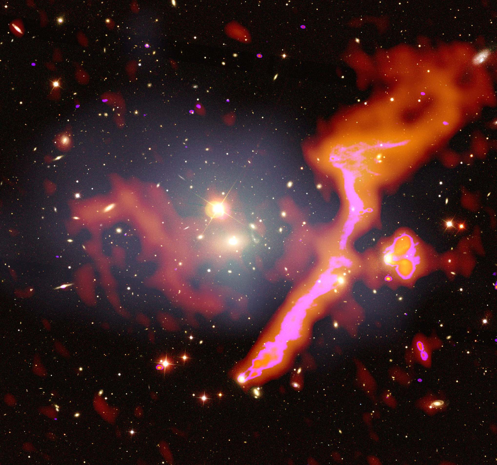 Huub Röttgering, Leiden University (The Netherlands): “If we take a radio telescope and we look up at the sky, we see mainly emission from the immediate environment of massive black holes. With LOFAR we hope to answer the fascinating question: where do those black holes come from?” What we do know is that black holes are pretty messy eaters. When gas falls onto them they emit jets of material that can be seen at radio wavelengths.