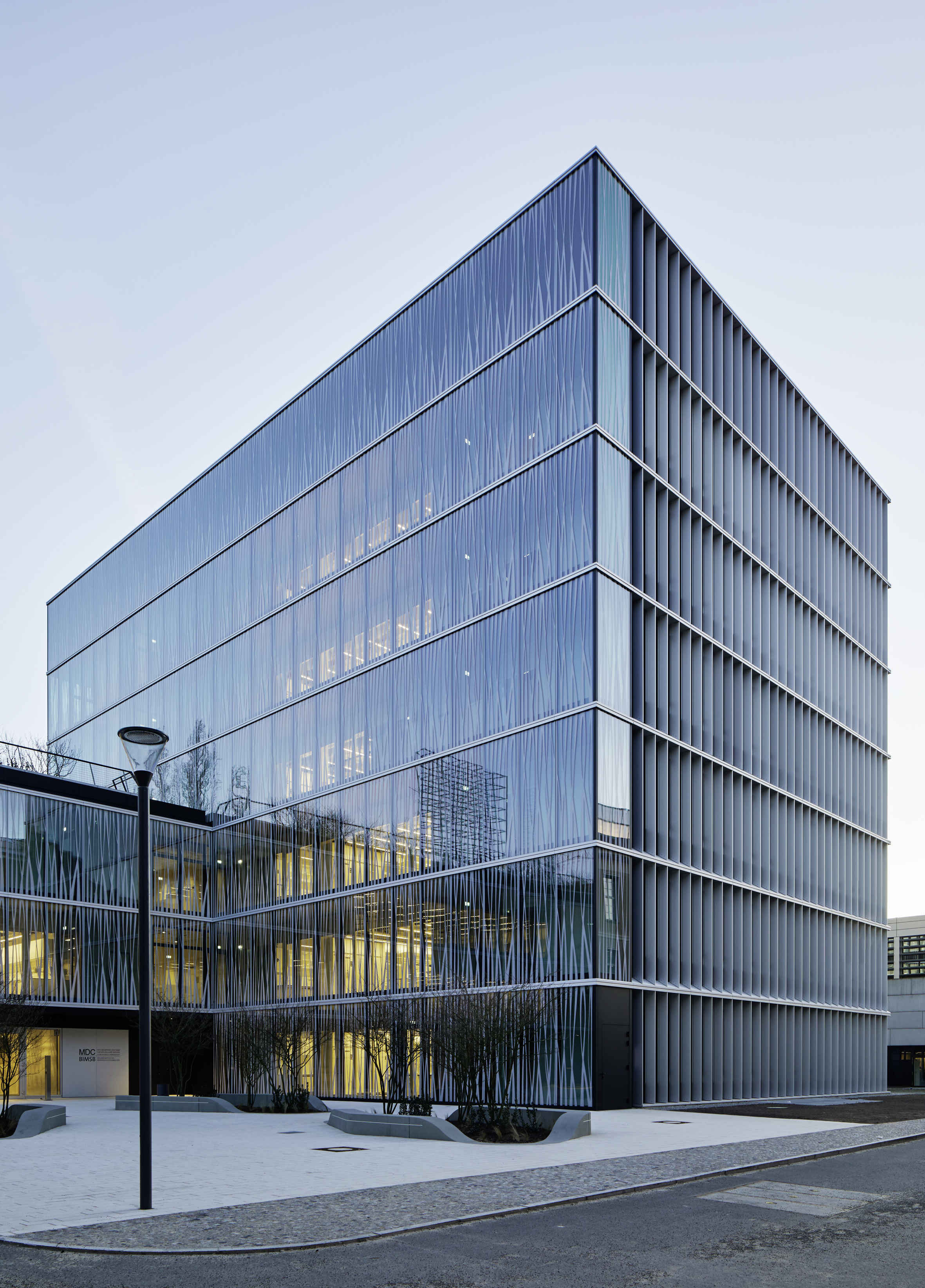 Gebaut hat das neue Forschungsgebäude das renommierte Architekturbüro Staab. Der Grundriss trägt der interdisziplinären Arbeitsweise der BIMSB-Forschungsteams Rechnung. Eine große Wendeltreppe in der Mitte des Hauses bildet das kommunikative Zentrum; die molekularbiologischen Laborarbeitsplätze liegen unmittelbar neben den rechnerintensiven bioinformatischen Büros – nur durch Glaswände getrennt. „Wir freuen uns auf die Arbeit im neuen Haus“, sagte Lohse. „Dieses lichte Gebäude steht für Offenheit und bietet ideale Bedingungen für wissenschaftlichen Austausch. Wir wollen den transparenten Bau in der Mitte der Stadt auch dazu nutzen, unsere Arbeit für die Gesellschaft transparent zu machen.“