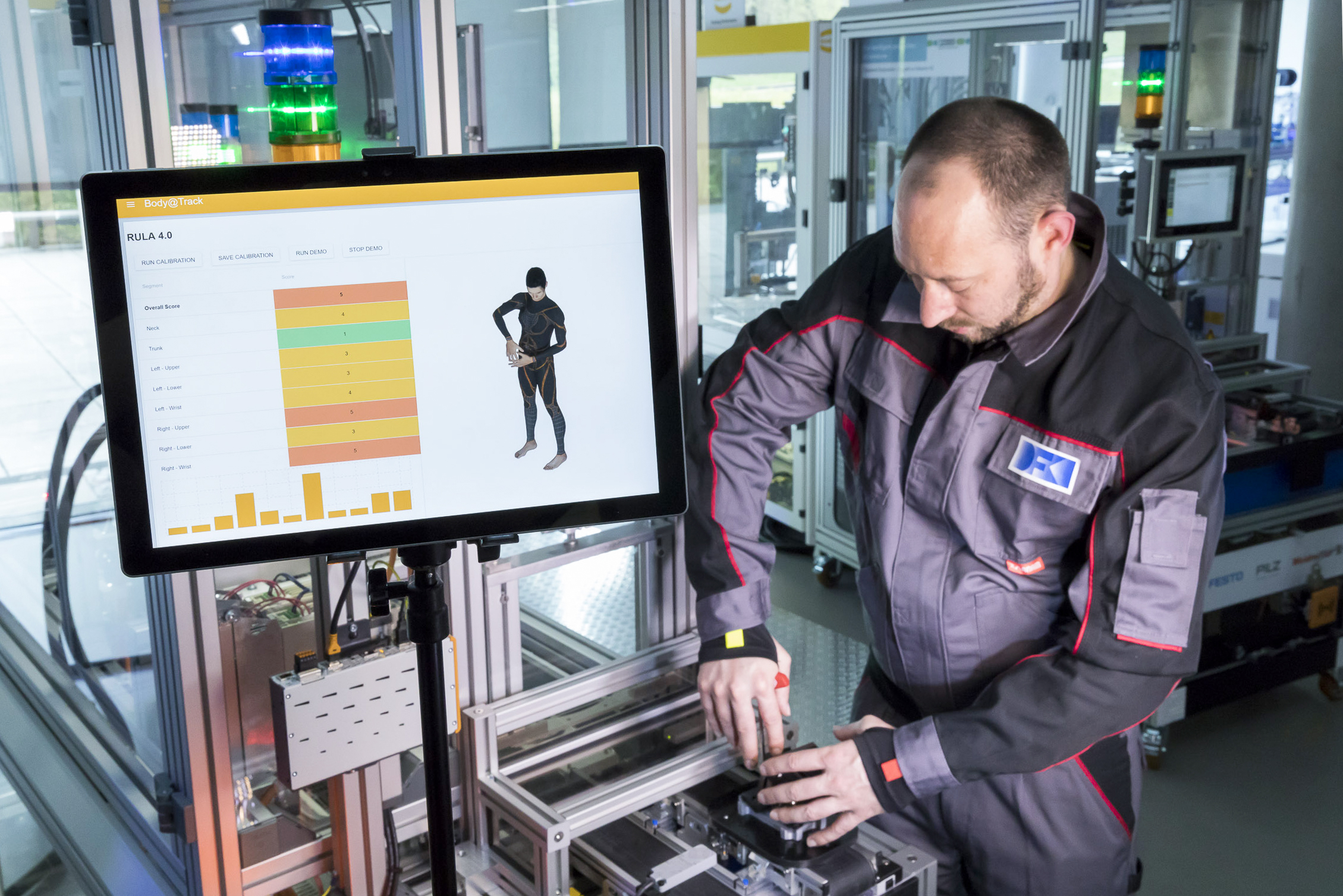 Prof. Didier Stricker, der Projektkoordinator von BIONIC und Leiter des DFKI-Forschungsbereichs Augmented Vision/Erweiterte Realität erklärt: „Durch ein Netzwerk von verschiedenen, am Körper getragenen Sensoren wollen wir ein System entwickeln, welches den gesundheitlichen Zustand von Arbeitern im Verlauf des Tages anhand der Bewegungen erfasst. Die Analyse wird auf einem intelligenten Chip direkt am Körper stattfinden, so dass die Rohdaten direkt an der „Quelle“ vorverarbeitet und eine Berechnung der Datenströme in Echtzeit möglich wird. Neuartige Methoden der Risikoanalyse erlauben so eine direkte Rückmeldung zu Belastungen und Fehlstellungen. Spielerische Anwendungen und eine Trainings-App motivieren dazu, einseitigen Belastungen entgegenzuwirken und geben personalisierte und medizinische Hilfestellungen für ein Training zuhause.“