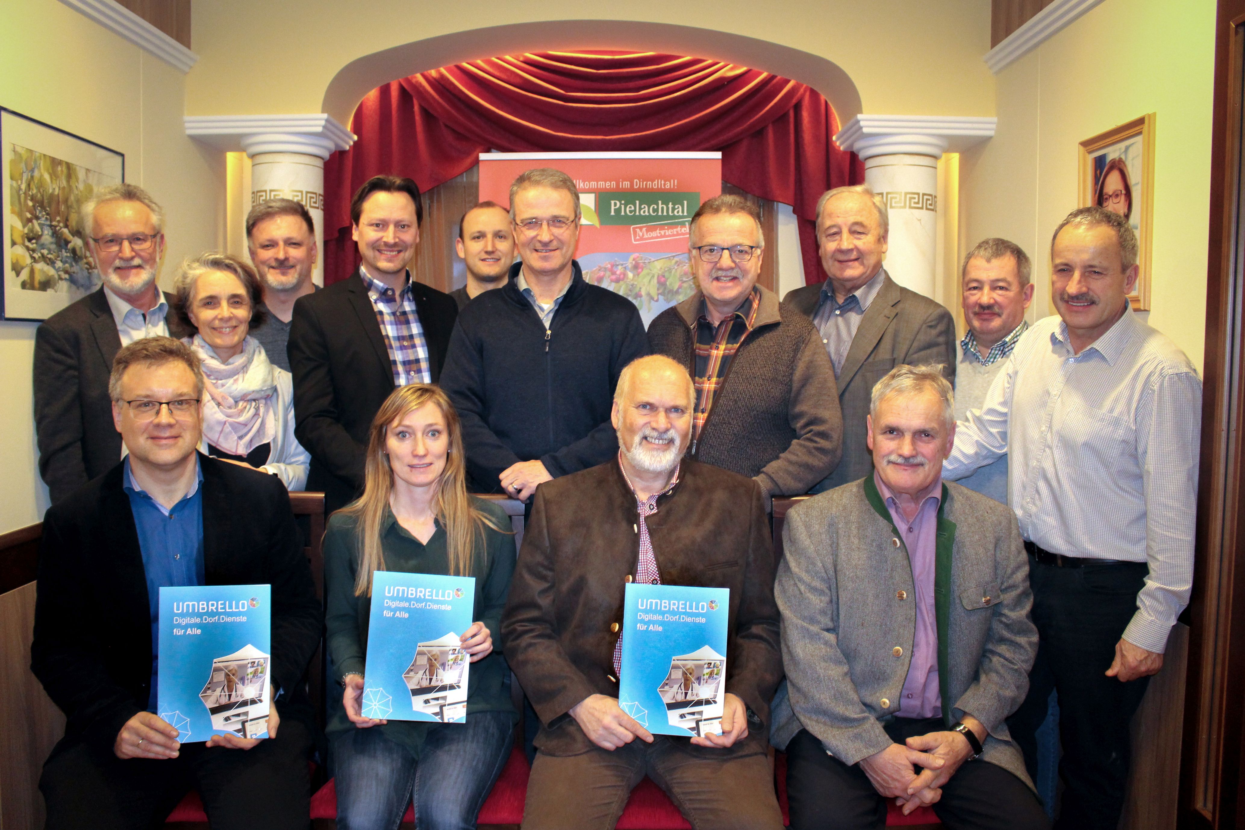 Gruppenfoto: Sitzend v.l.n.r: FH-Prof. Mag. Dr. Johannes Pflegerl, Edith Kendler, Obmann Bgm. Ing. Kurt Wittmann, ÖKR Bgm. Anton Gonaus; stehend v.l.n.r.: Gerhard Hackner, DI Sabine Klimitsch, Vize-Bgm. Wolfgang Grünbichler, Bgm. DI(FH) Rainer Handlfinger, Florian Zahorka, Bgm. Peter Kalteis, Bgm. Franz Größbacher, Bgm. Ernst Kulovits, Engelbert Fahrngruber, Vize-Bgm. Franz Singer, Credit: Regionalbüro Pielachtal / Melanie Scholze-Simmel
