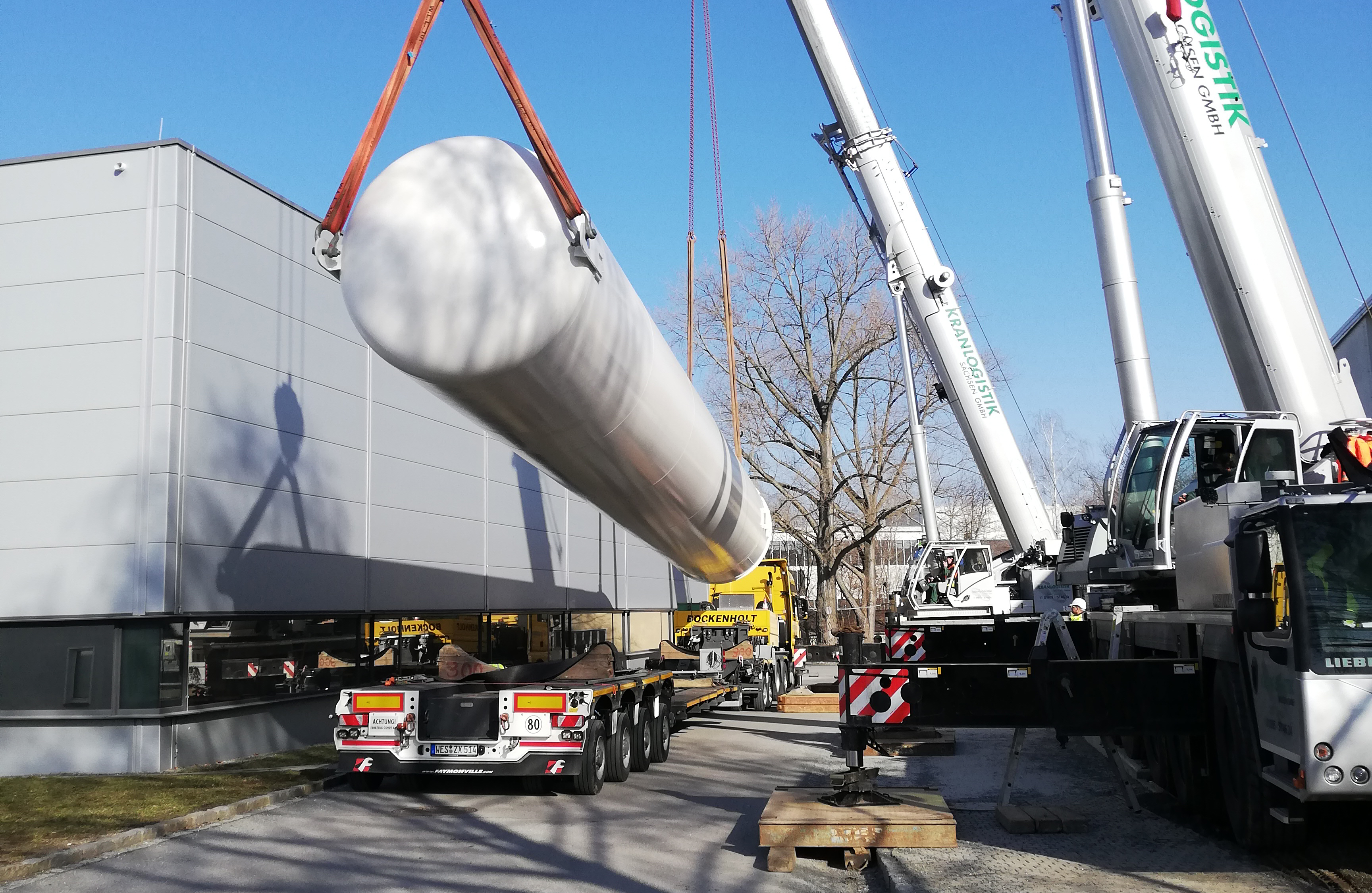 Die Forschungskooperation für Brennstoffzellensysteme zwischen dem Technologieunternehmen Continental und der Professur Alternative Fahrzeugantriebe (ALF) der Technischen Universität Chemnitz nimmt weiter Fahrt auf. Dafür wurde heute, am 27. Februar 2019, ein 18 Meter hoher und 3,5 Meter breiter Wasserstofftank auf dem Campus der TU an der Reichenhainer Straße aufgestellt.