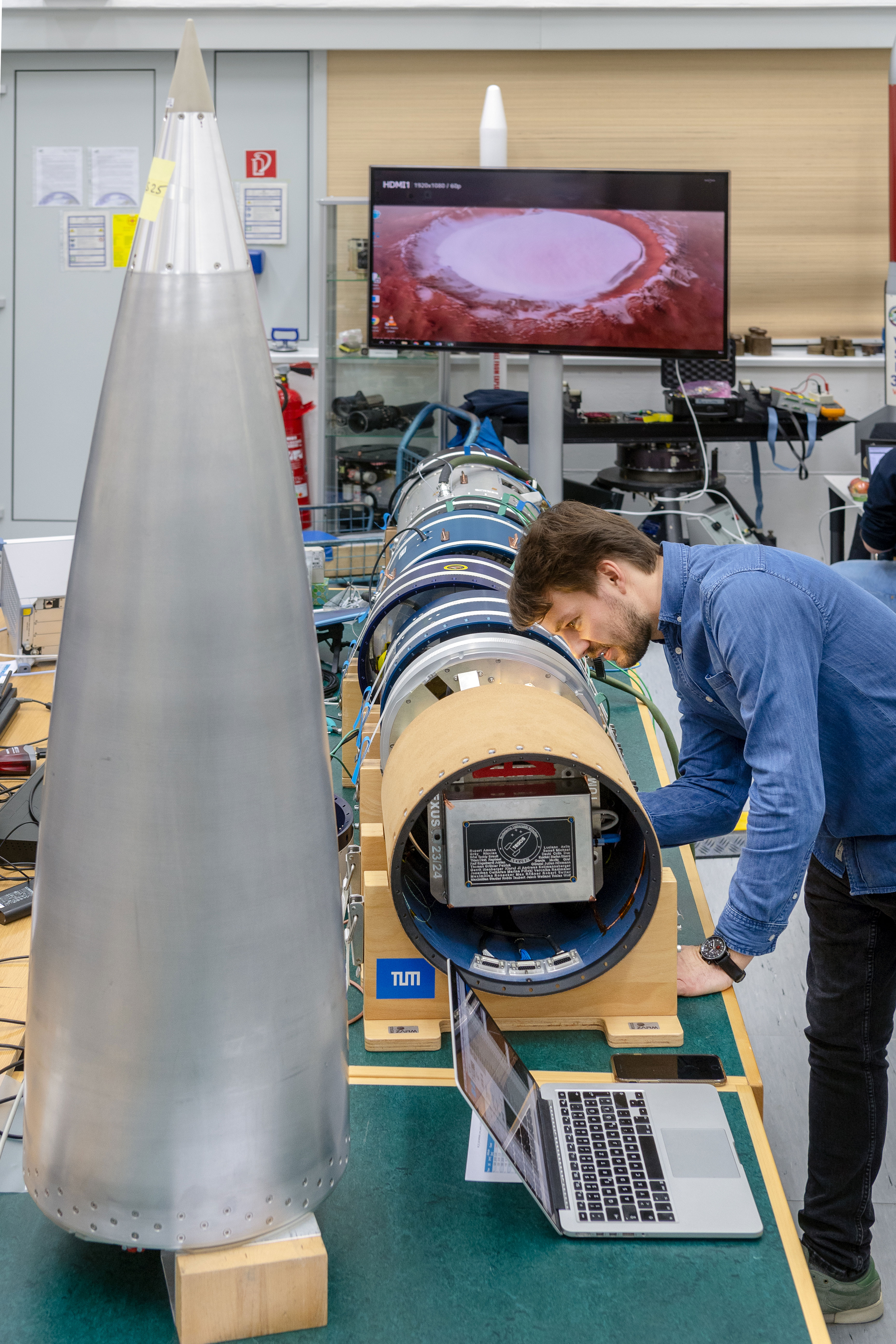 Prof. Klaus Drechsler, Leiter des Lehrstuhls, sieht das REXUS-Projekt als Beispiel dafür, wie gut sich die bestehenden und zukünftigen Standorte der neuen Fakultät für Luftfahrt, Raumfahrt und Geodäsie an der TUM ergänzen. So wurde am LCC in Garching das Strukturkonzept erstellt und die Materialcharakterisierung durchgeführt. Die Fertigung fand im „Processing Lab“ der TUM auf dem Ludwig-Bölkow-Campus in Taufkirchen/Ottobrunn statt.