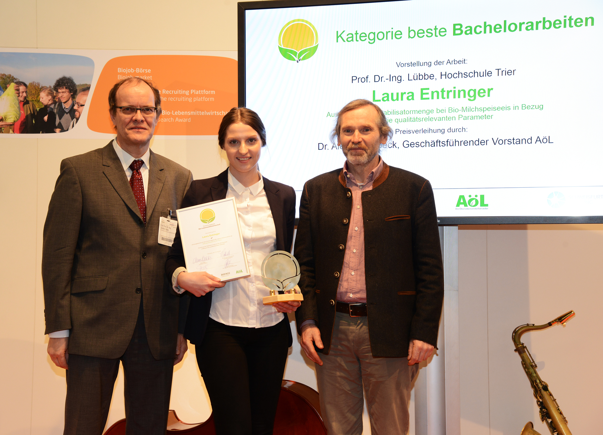 In der Fachrichtung Lebensmitteltechnik der HS Trier wird praxisnah und angewandt geforscht. Einen hohen Stellenwert nimmt das Thema Qualität von Bio-Lebensmitteln ein. In diesem Zusammenhang konnte die Fachrichtung nun mit der Bachelorarbeit von Laura Entringer einen großen Erfolg erzielen. Auf der renommierten internationalen Messe BIOFACH in Nürnberg wurde der Forschungspreis Bio-Lebensmittelwirtschaft 2019 in der Kategorie „Beste Bachelorarbeit“ an die Absolventin verliehen und die Arbeit mit 2.000 Euro prämiert.