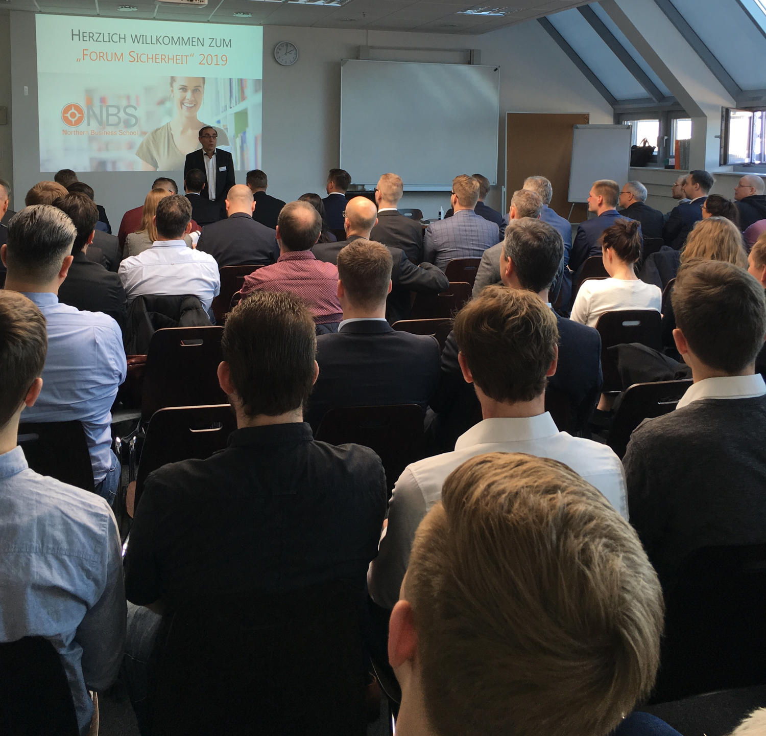 Zum vierten Mal fand am 27. Februar 2019 im Studienzentrum Quarree der Northern Business School (NBS) das "Forum Sicherheit" statt. Über 80 Gäste waren der Einladung von Prof. Dr. André Röhl, Studiengangleiter Sicherheitsmanagement (B.A.) an der NBS, gefolgt. Geboten wurden ihnen nicht nur spannende und thematisch abwechslungsreiche Fachvorträge, sondern auch die Gelegenheit zum fachlichen Austausch mit Studierenden, Wissenschaftlern und Praxisvertretern.