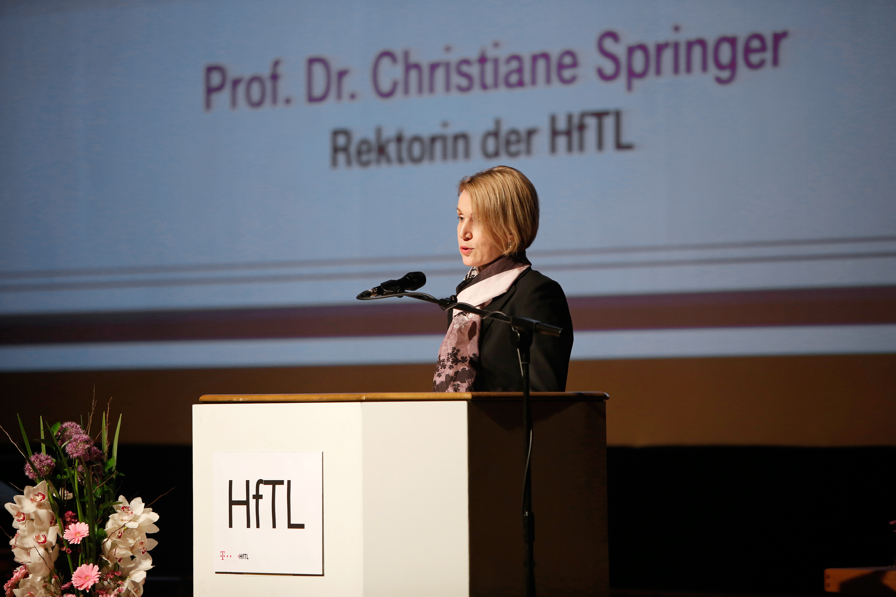 Die Rektorin der Hochschule für Telekommunikation Leipzig (HfTL), Prof. Dr. Christiane Springer, verabschiedete die Studierenden aus den Reihen der eingeschriebenen Kommilitonen.