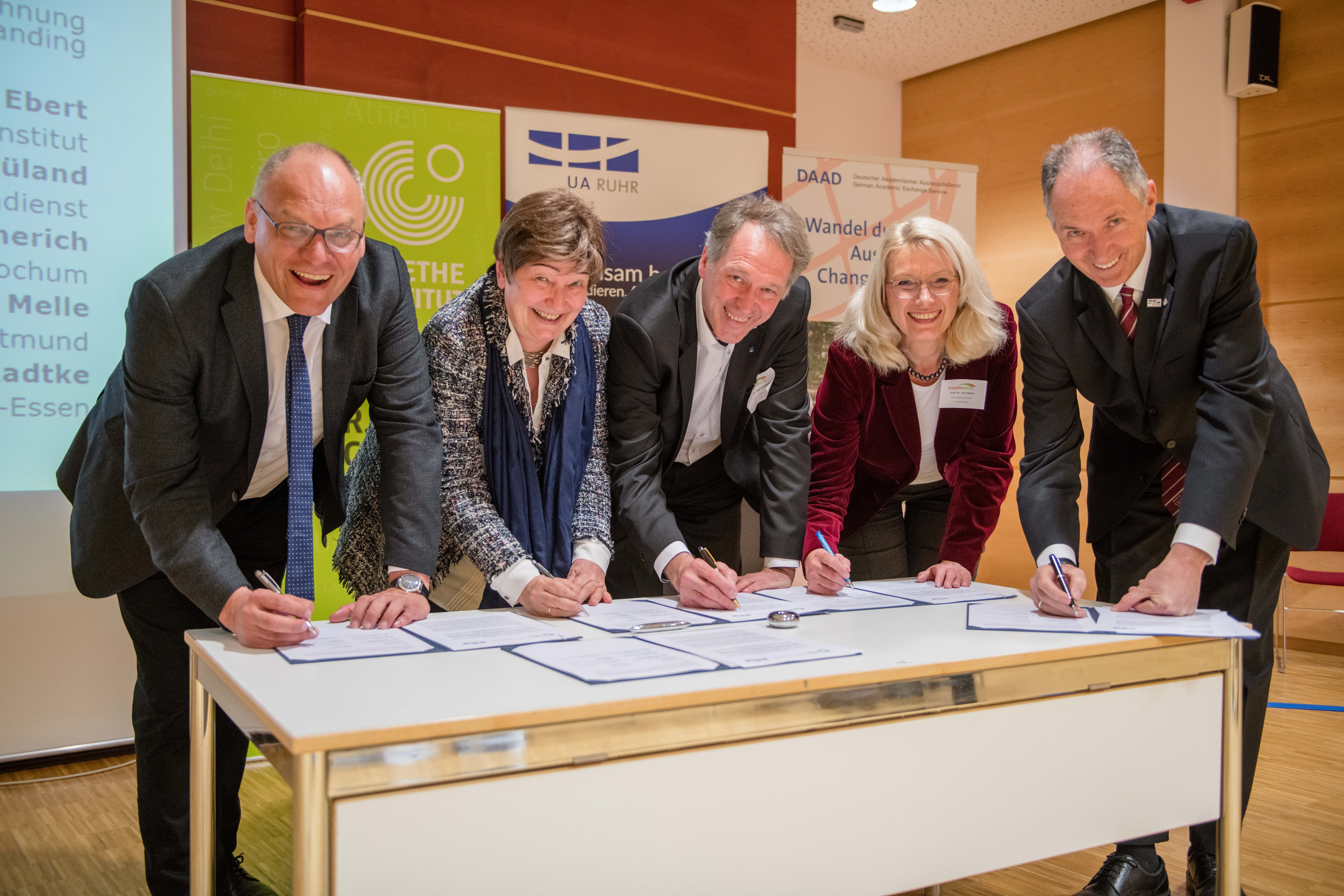 Mit dem Bildungsprogramm Studienbrücke bereiten das Goethe-Institut, die Universitätsallianz Ruhr (UA Ruhr) und der Deutsche Akademische Austauschdienst (DAAD) seit 2015 internationale Schulabsolventen in bislang 18 Ländern für ein Studium an einer deutschen Hochschule vor. Im Beisein der Ministerin für Kultur und Wissenschaft des Landes Nordrhein-Westfalen, Isabel Pfeiffer-Poensgen, unterzeichneten die Partner am 8. März 2019 ein Memorandum of Understanding, um die Studienbrücke auszuweiten.