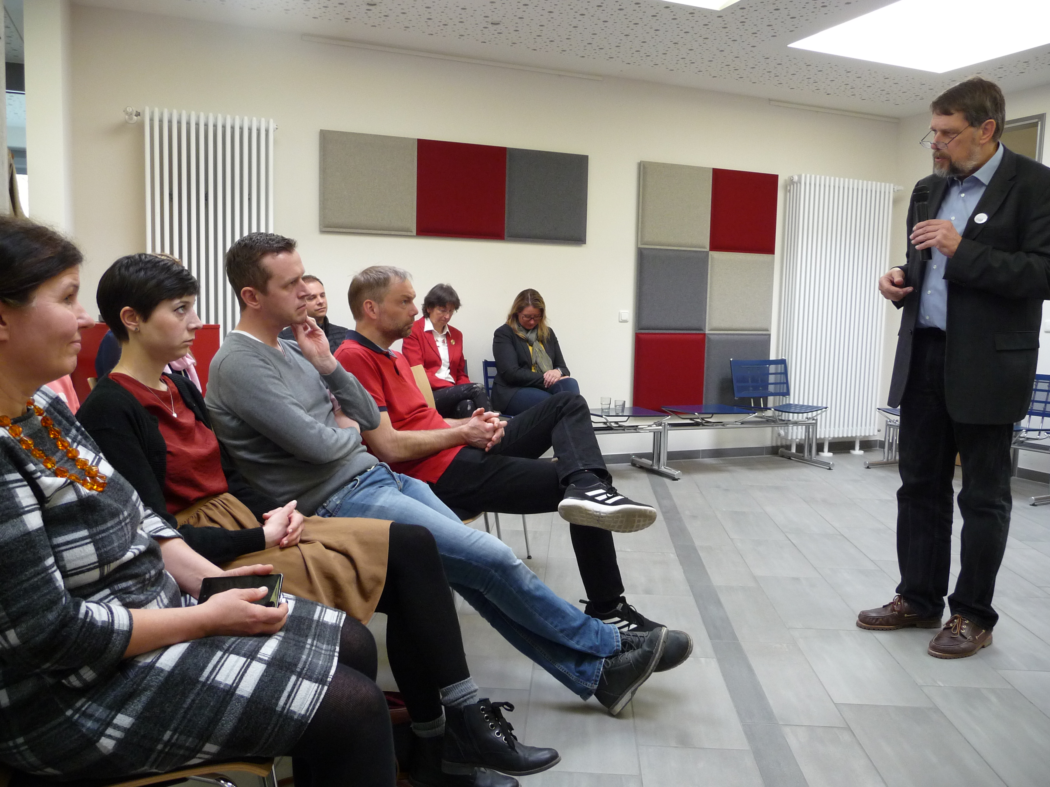 Gleichzeitig stellte sie den ehemaligen Krebspatienten Tobias vor. Der Vater von fast einjährigen Zwillingen war mit 24 Jahren an Hodenkrebs erkrankt und leitet heute den ersten TREFFPUNKT der Stiftung in Bayern. Er beschrieb seine ehrenamtliche Arbeit und die seiner Mitstreiter im TREFFPUNKT Augsburg sowie „die sehr gute Zusammenarbeit mit der Stiftung“.
