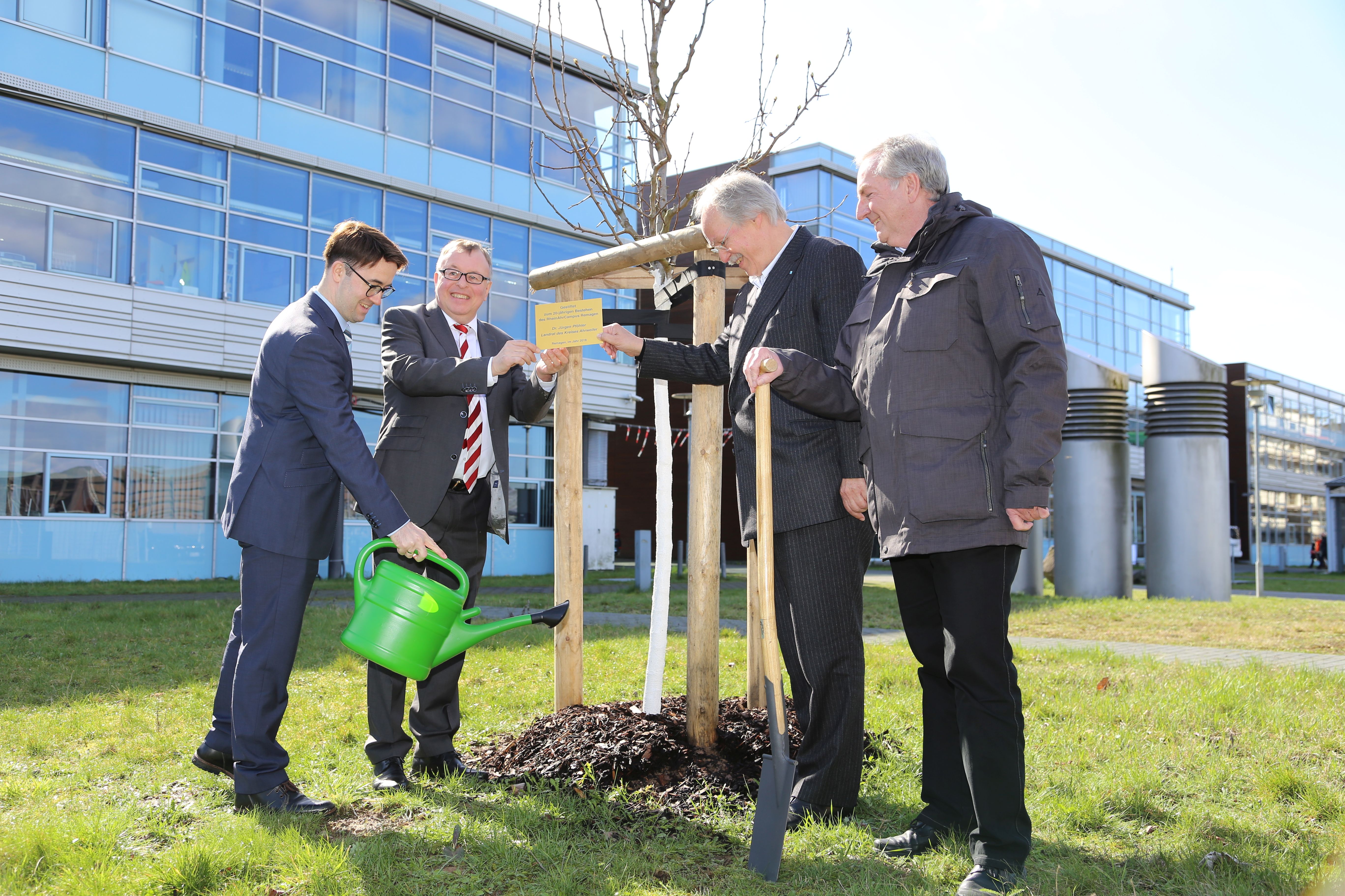 Zum 20-jährigen Bestehen des RheinAhrCampus der Hochschule Koblenz hat Landrat Dr. Jürgen Pföhler der Hochschule in Remagen einen Birnenbaum gestiftet. Jetzt hat Pföhler diesen Baum offiziell an den Präsidenten der Hochschule Koblenz, Prof. Dr. Kristian Bosselmann-Cyran, sowie an den Vizepräsidenten Prof. Dr. Dietrich Holz übergeben.